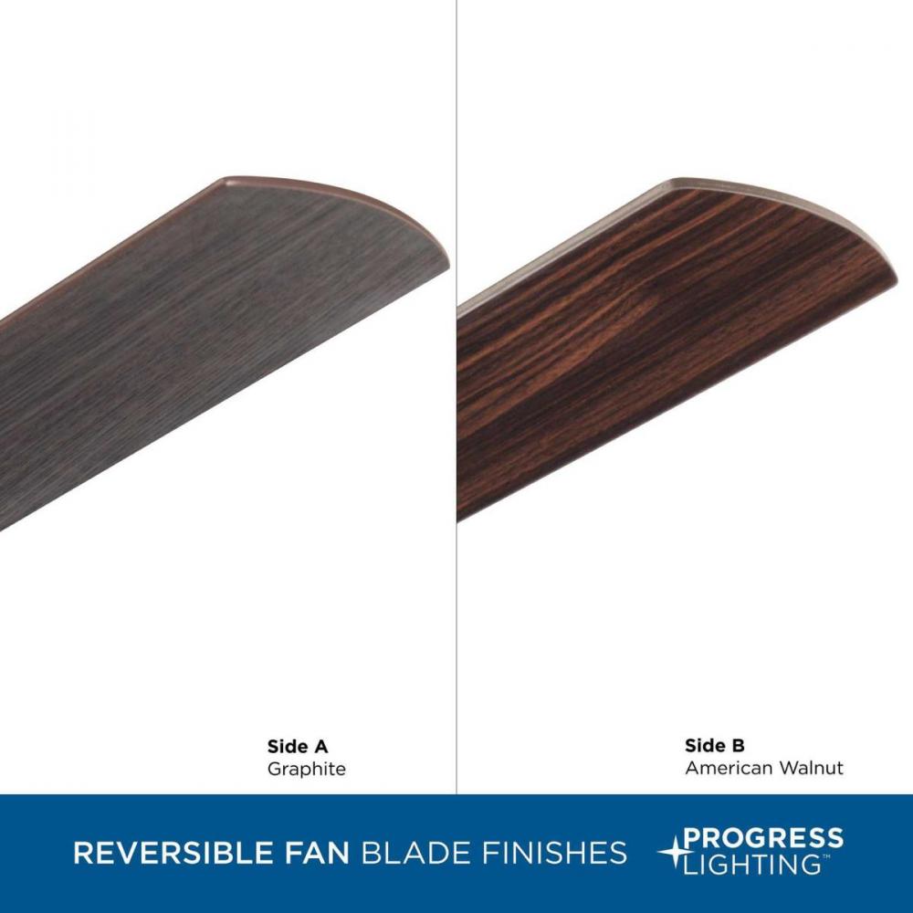 Five-blade 54" Harranvale ceiling fan features an LED light source, offering both form and function with energy- and cost-savings benefits;Features Graphite/American Walnut reversible blades;Harranvale ceiling fan with Graphite finish and Brushed Nicke