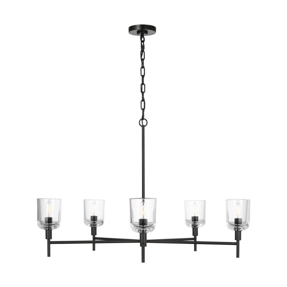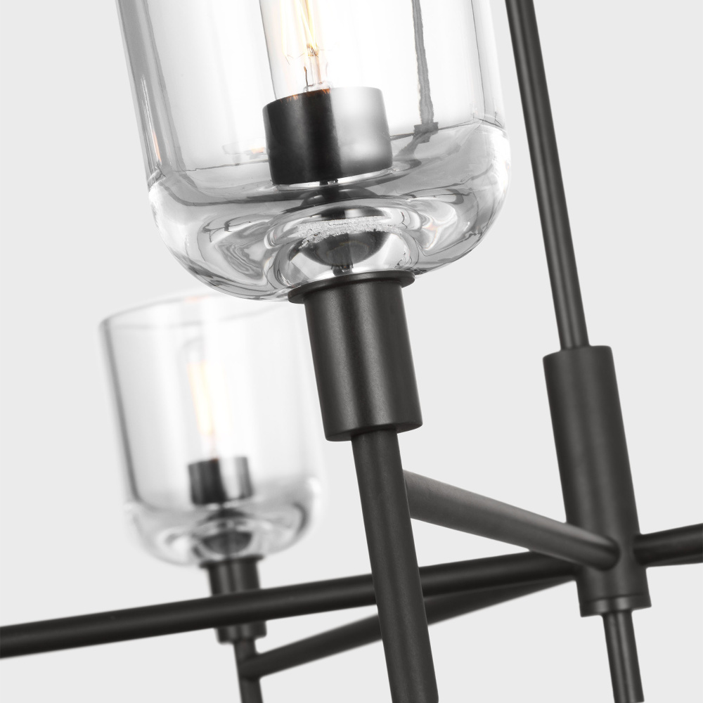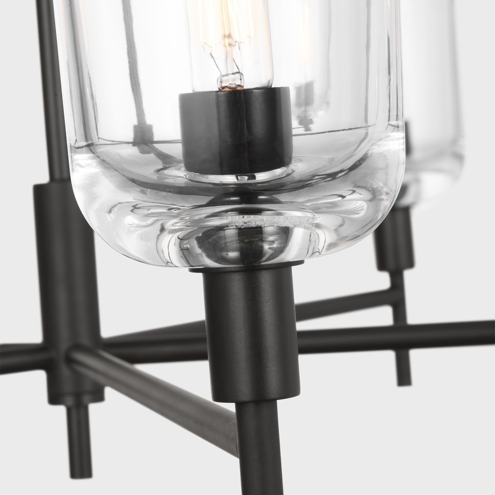 Crafted with Steel in a Aged Iron finish with clear glass shades