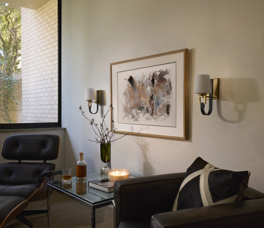 Hidalgo wall mount blends upscale design with mixed materials. Fashion-inspired leather trims paired with the buckle accent add contrast and depth to the rich design. Designed to complement the Hidalgo chandelier, this wall mount helps unify a space, adding layers of sophistication and warmth to traditional and casual interiors.