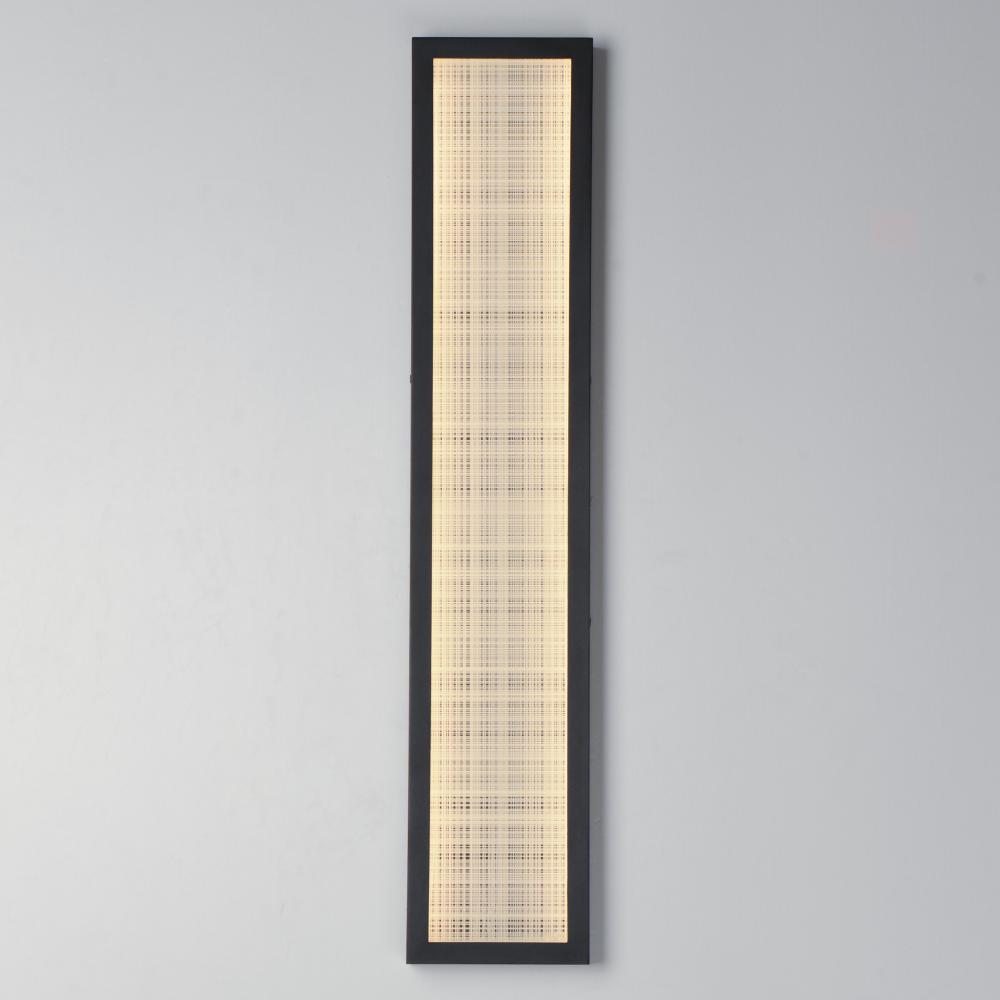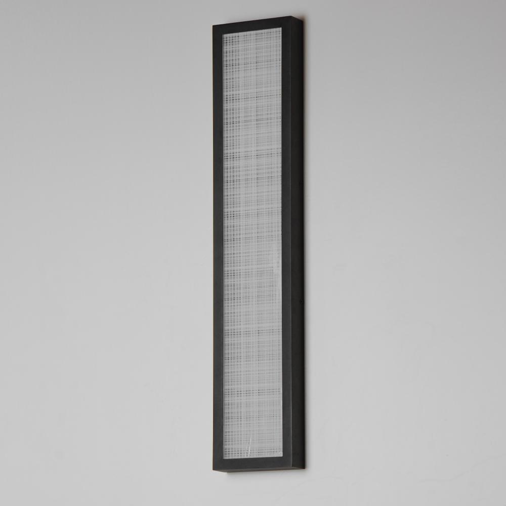 An internally illuminated shadow box is encased in glass with a tartan plaid pattern engraved to mimic linen. The back plate features a polished stainless steel plate adding an almost infinite dimension to the pattern. Constructed of aluminum in Matte Blac