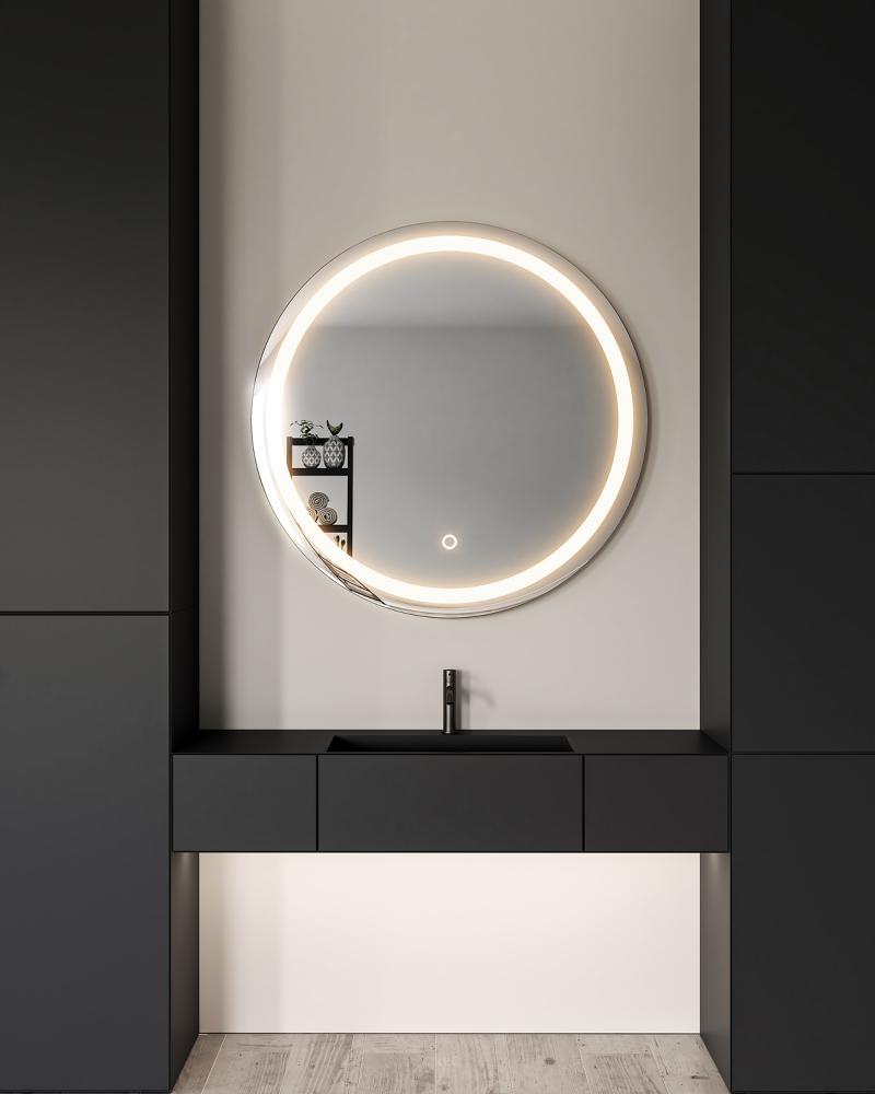 Elevate your daily routine with the Hillmont Round LED Lighting Mirror, a perfect fusion of contemporary style and practicality. Its circular design adds a touch of sophistication to any space. With five selectable color temperature options, you can set the mood and lighting that suits you best, while the convenient touch-based dimming button ensures effortless control. Illuminate your world with the Hillmont Mirror, designed to enhance your morning routine and elevate your makeup game.