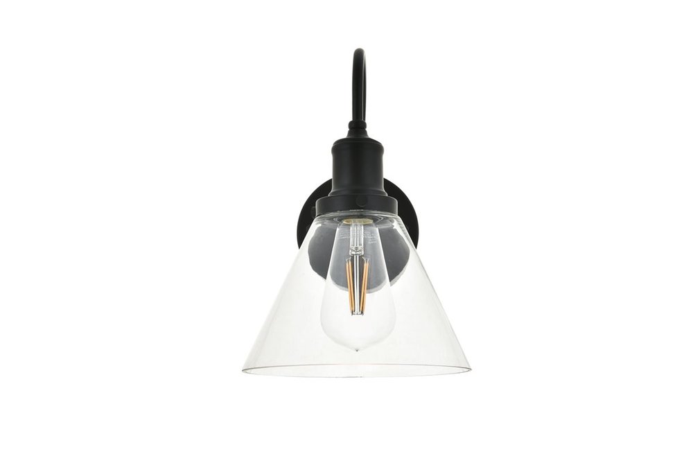 Take a step back through time with the Histoire wall lamp in a black finish. The ever delightful undulating arm supports the clear glass cone shade while light illuminates the surrounding area, creating a beautiful display of charm. A perfect wall lamp to act as your guide in your foyer or living room, or even to light up your bathroom walls, you will always enjoy its captivating light.