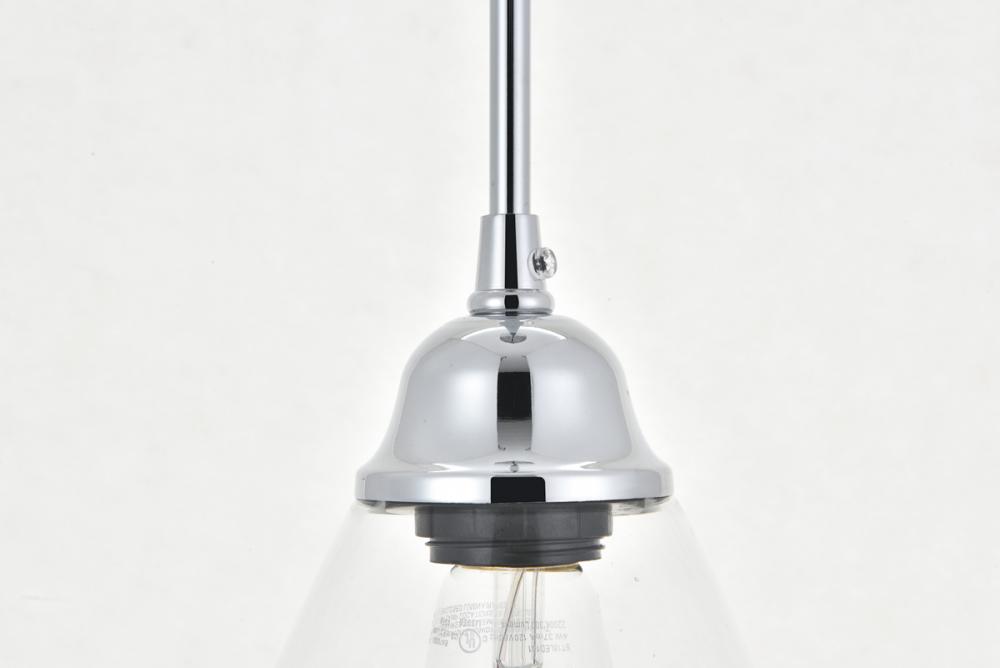 Take a step back through time with the Histoire 3-light pendant lamp in a chrome finish. The ever delightful adjustable cords support the clear glass cone shades while lights illuminate the surrounding area, creating a beautiful display of charm. Hanging in a group of 3, this is the perfect pendant lamp to act as your guide in your foyer or living room, or even to light up your bathroom walls, you will always enjoy its captivating light.