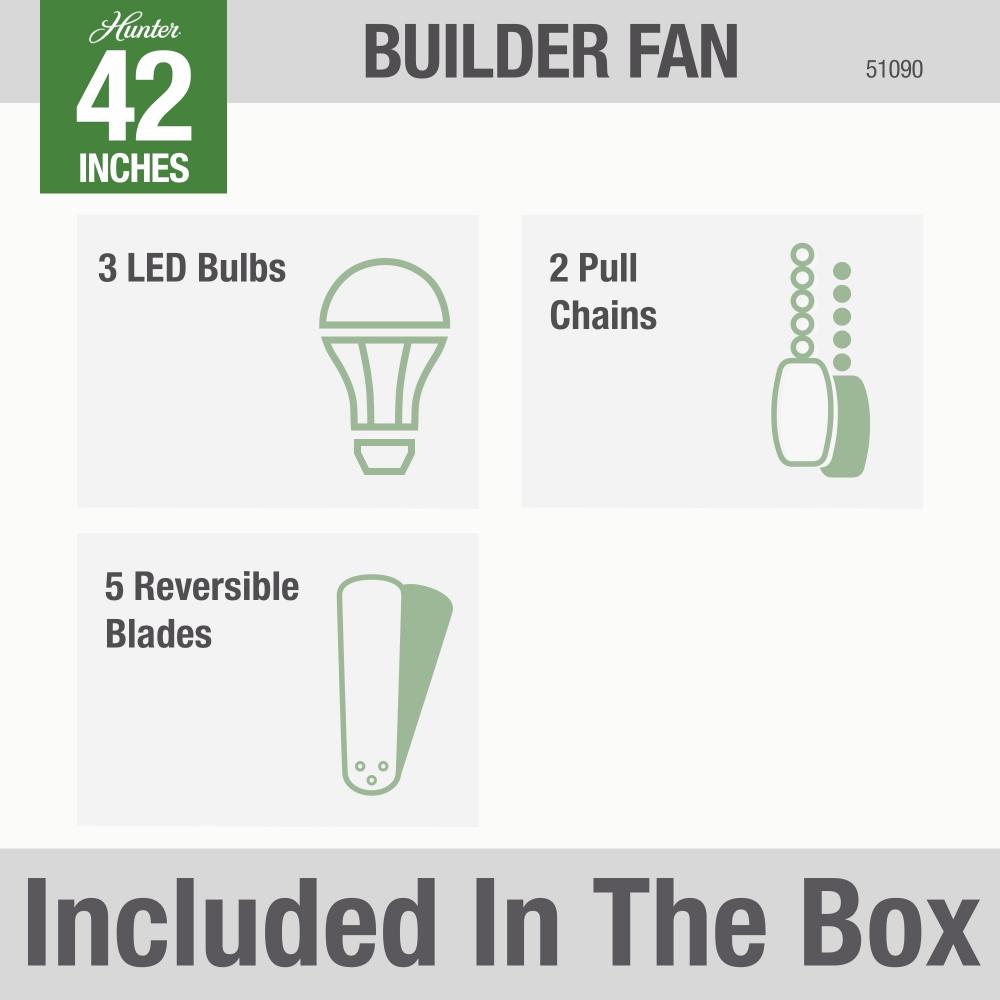 Hunter 53089 - Hunter 52 inch Builder White Ceiling Fan with LED Light Kit and Pull Chain