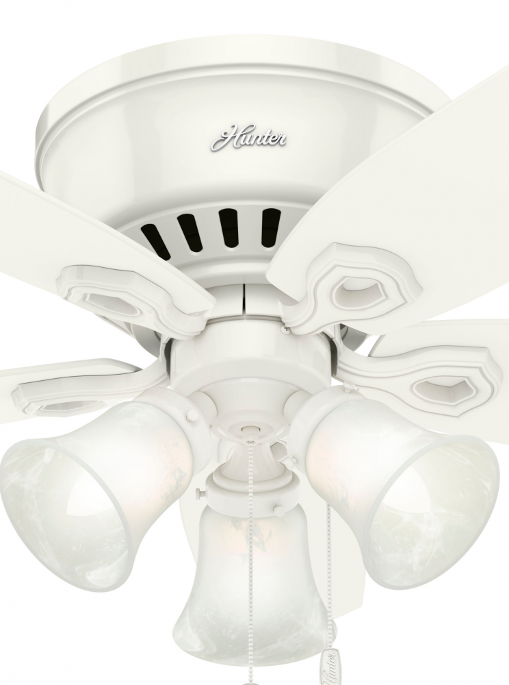 Hunter 42 inch Builder Snow White Low Profile Ceiling Fan with LED Light Kit and Pull Chain