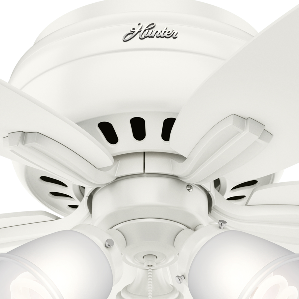 Hunter 52 inch Newsome Fresh White Low Profile Ceiling Fan with LED Light Kit and Pull Chain