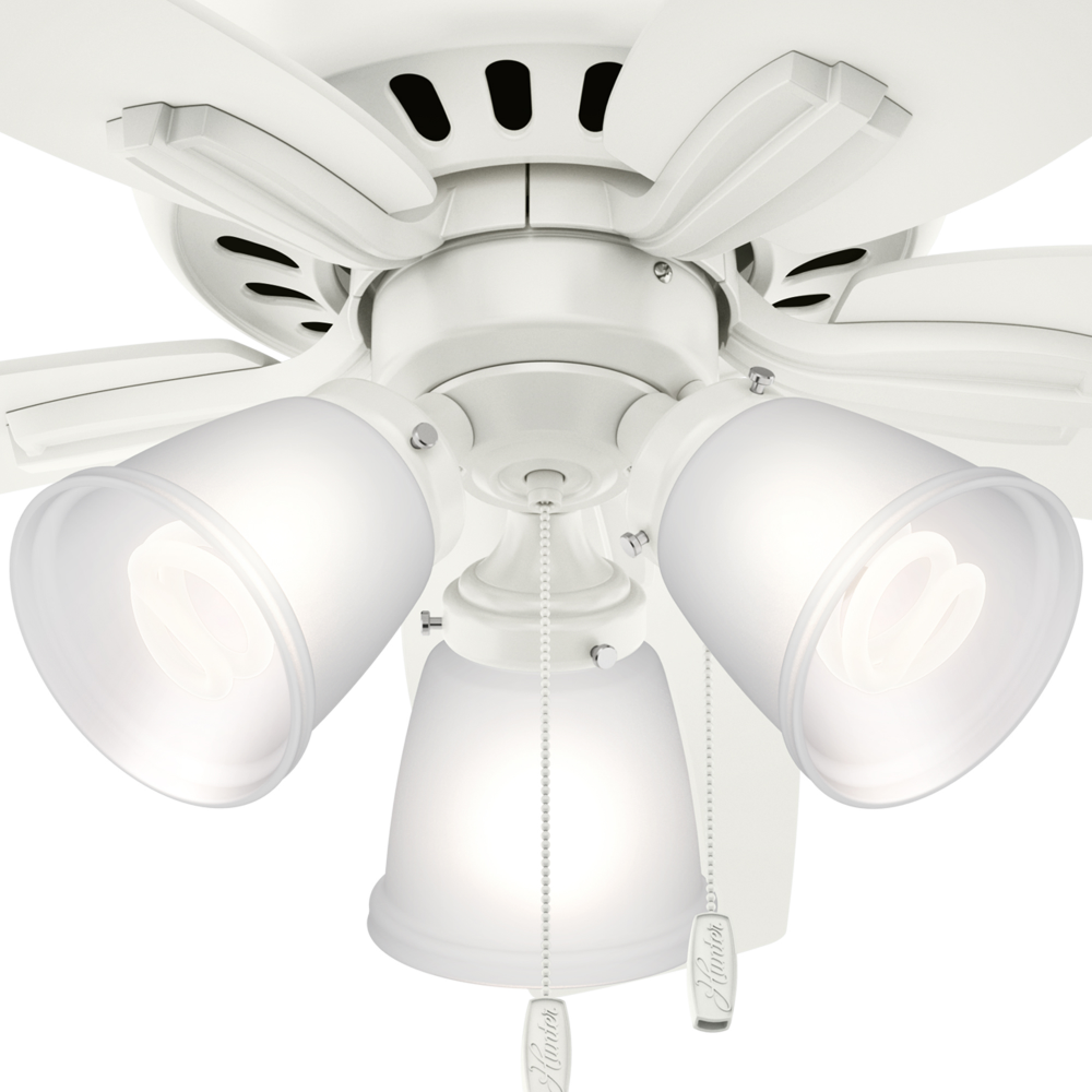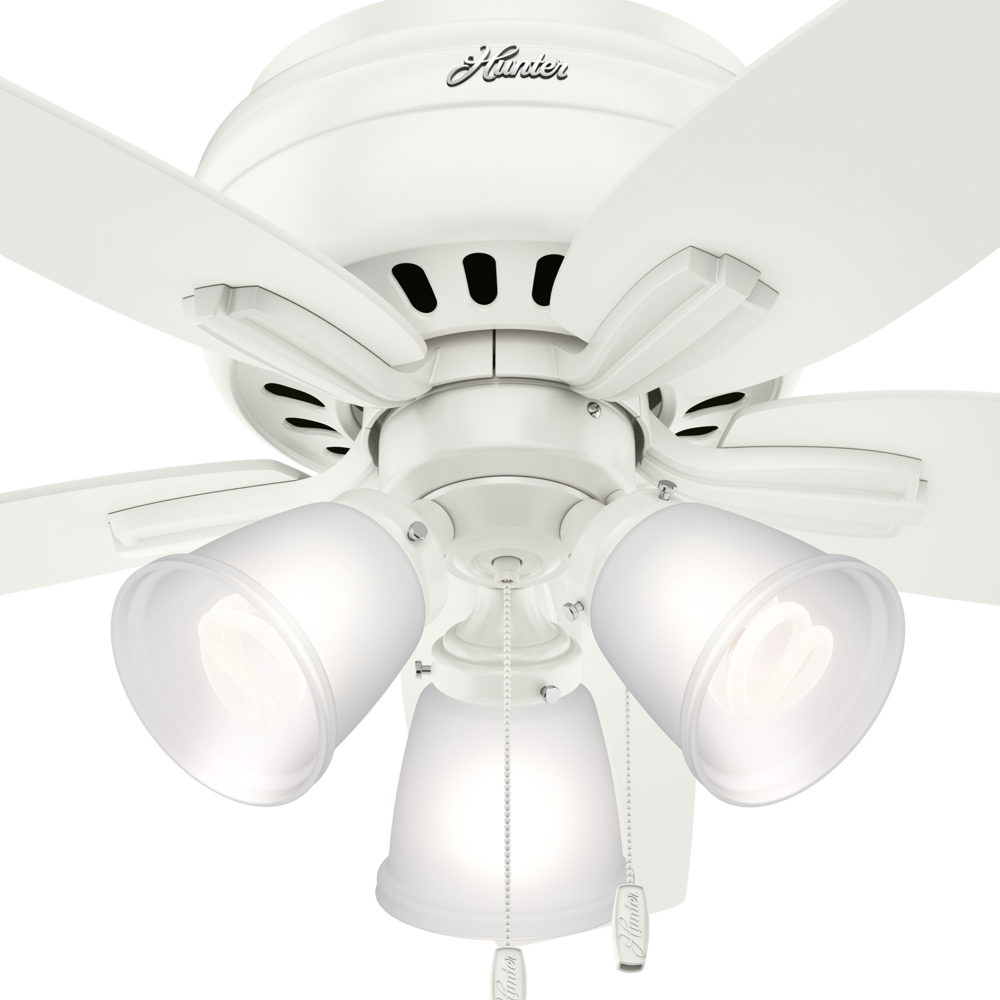 Hunter 42 inch Newsome Fresh White Low Profile Ceiling Fan with LED Light Kit and Pull Chain