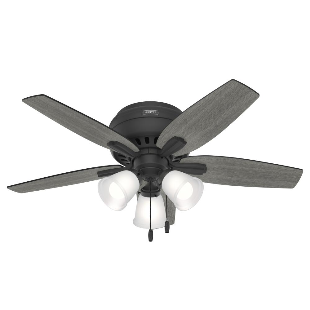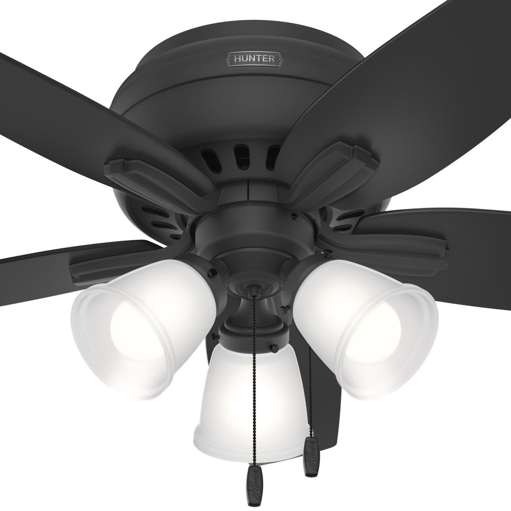 Hunter 42 inch Newsome Matte Black Low Profile Ceiling Fan with LED Light Kit and Pull Chain