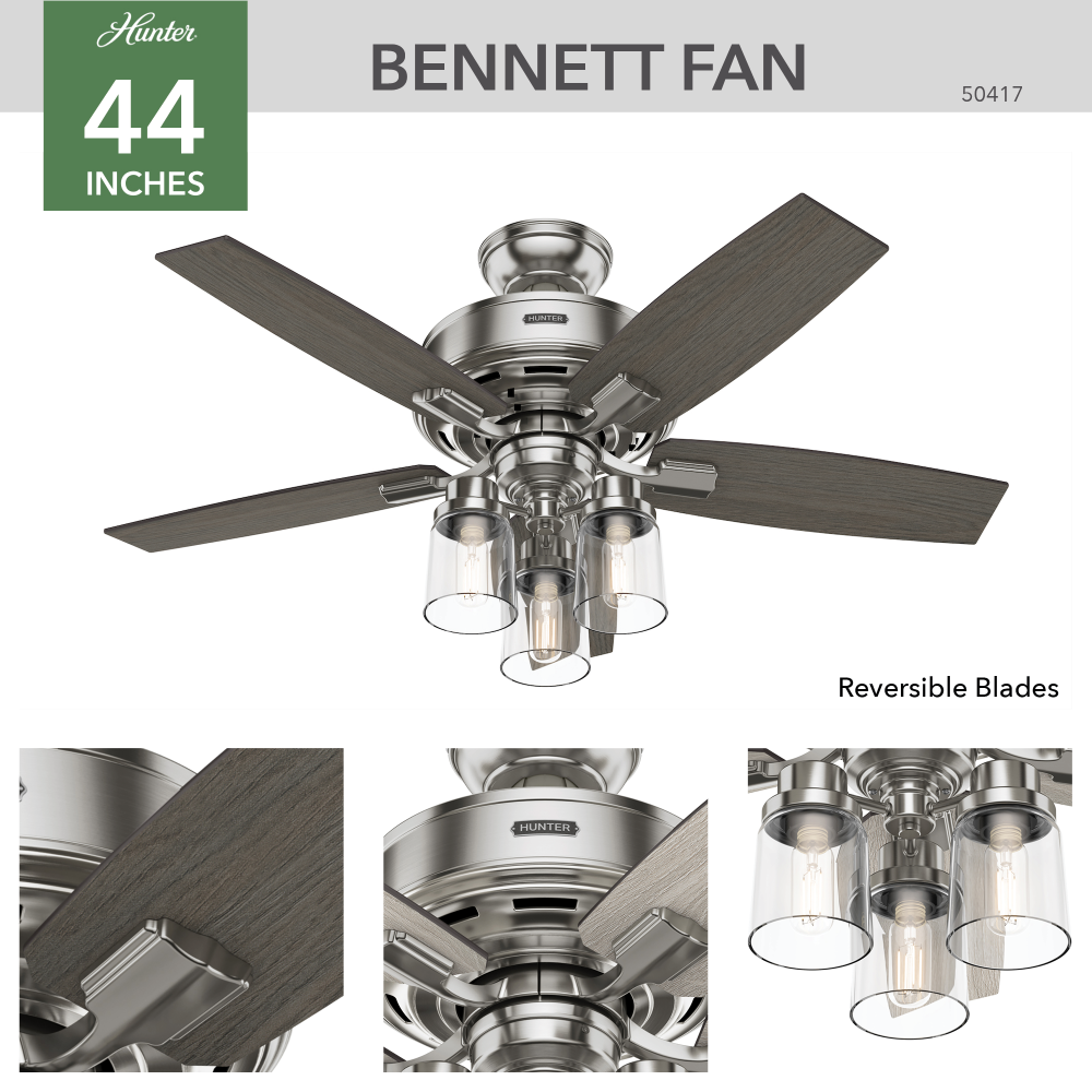 Hunter 44 inch Bennett Brushed Nickel Ceiling Fan with LED Light Kit and Handheld Remote