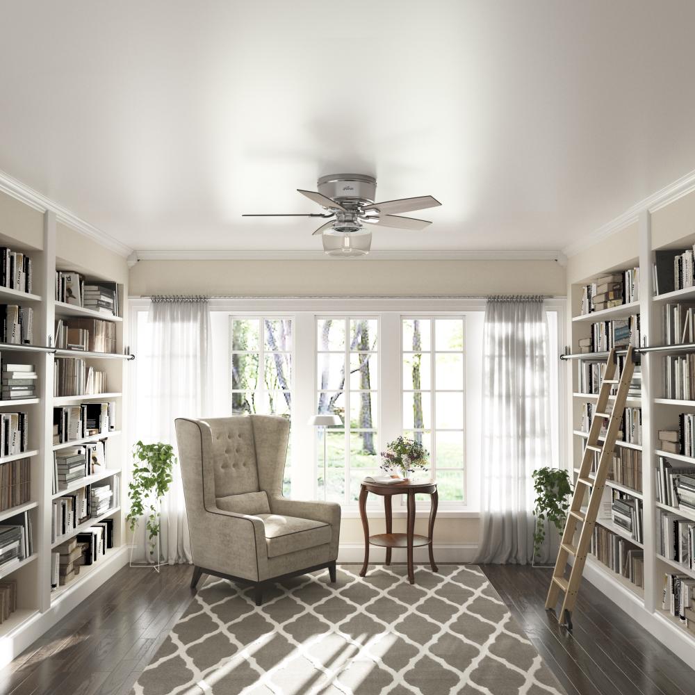 Hunter 52 inch Bennett Brushed Nickel Low Profile Ceiling Fan with LED Light Kit and Handheld Remote
