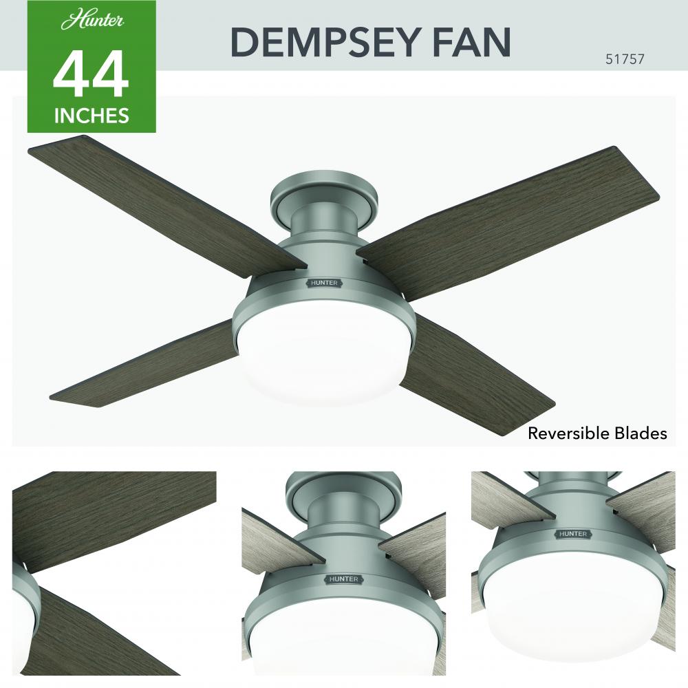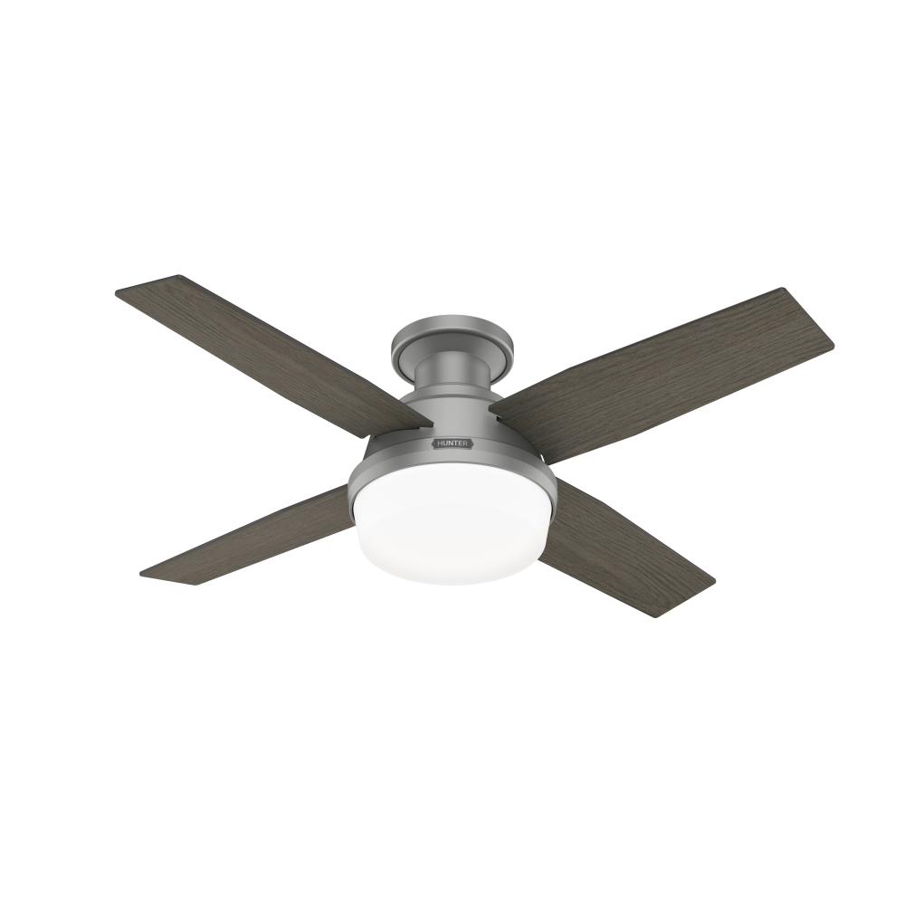 Hunter 44 inch Dempsey Matte Silver Low Profile Ceiling Fan with LED Light Kit and Handheld Remote