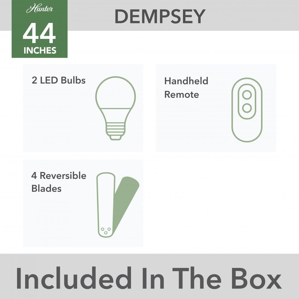 Hunter 50284 - Hunter 52 inch Dempsey Brushed Nickel Ceiling Fan with LED Light Kit and Handheld Remote