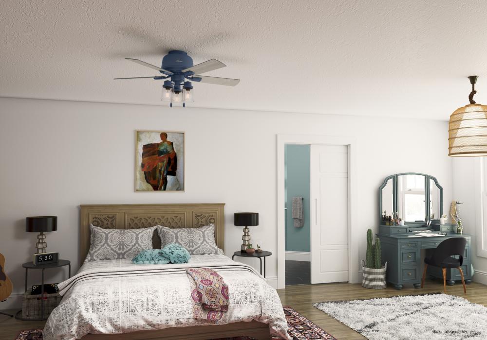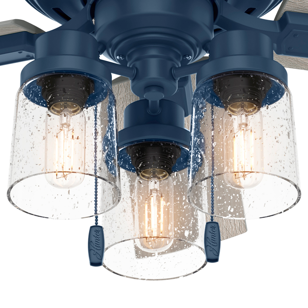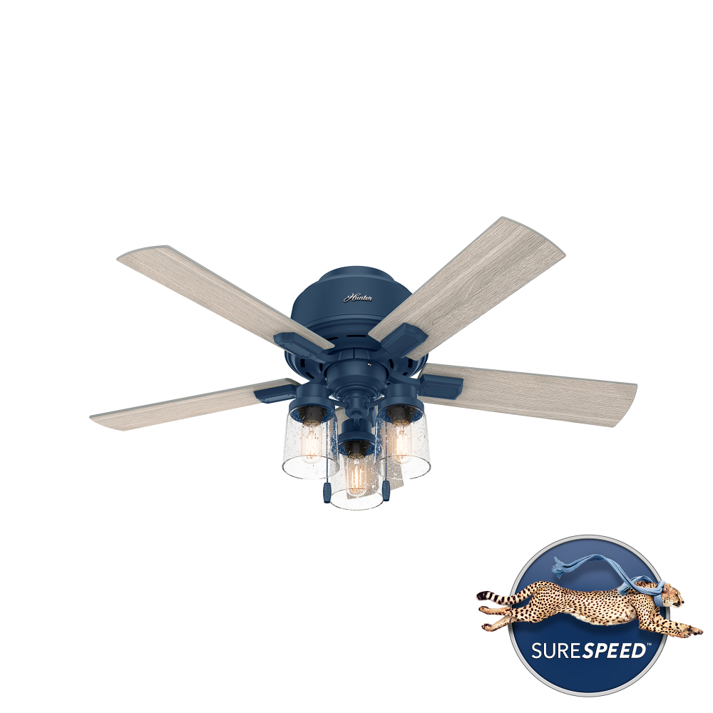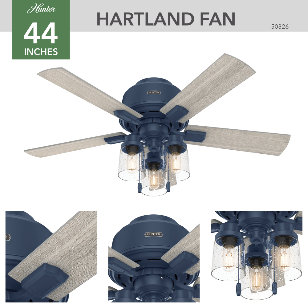 Hunter 44 inch Hartland Indigo Blue Low Profile Ceiling Fan with LED Light Kit and Pull Chain