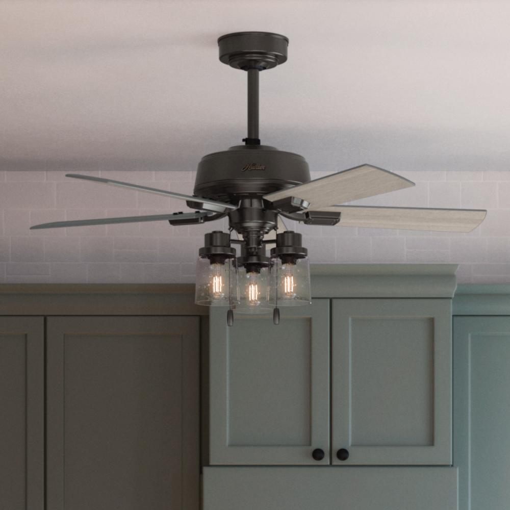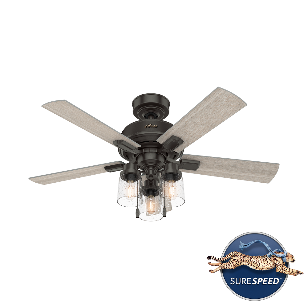 Hunter 44 inch Hartland Noble Bronze Ceiling Fan with LED Light Kit and Pull Chain