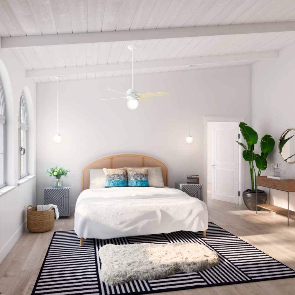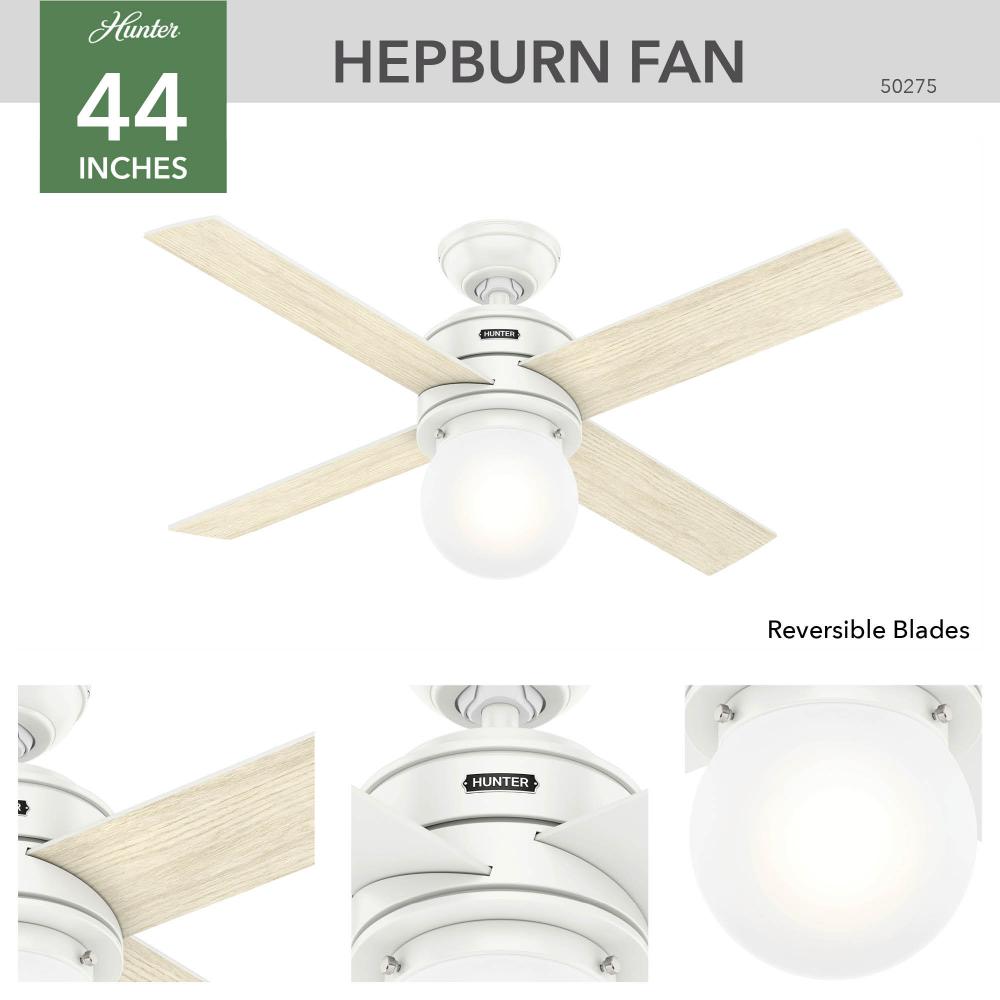 Hunter 50275 - Hunter 44 inch Hepburn Matte White Ceiling Fan with LED Light Kit and Wall Control