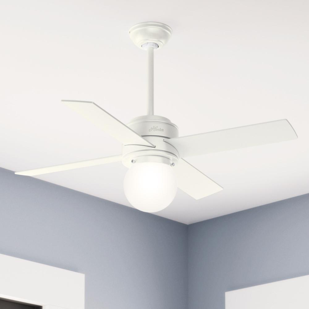 Hunter 44 inch Hepburn Matte White Ceiling Fan with LED Light Kit and Wall Control