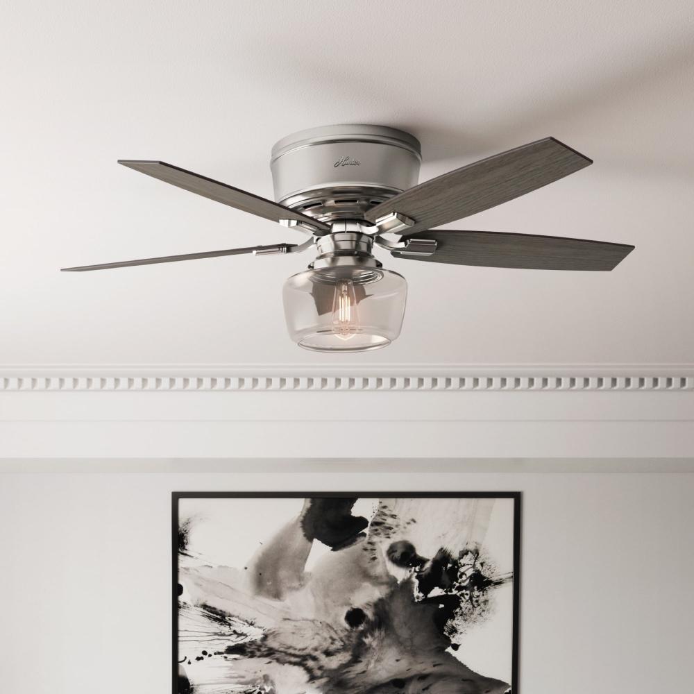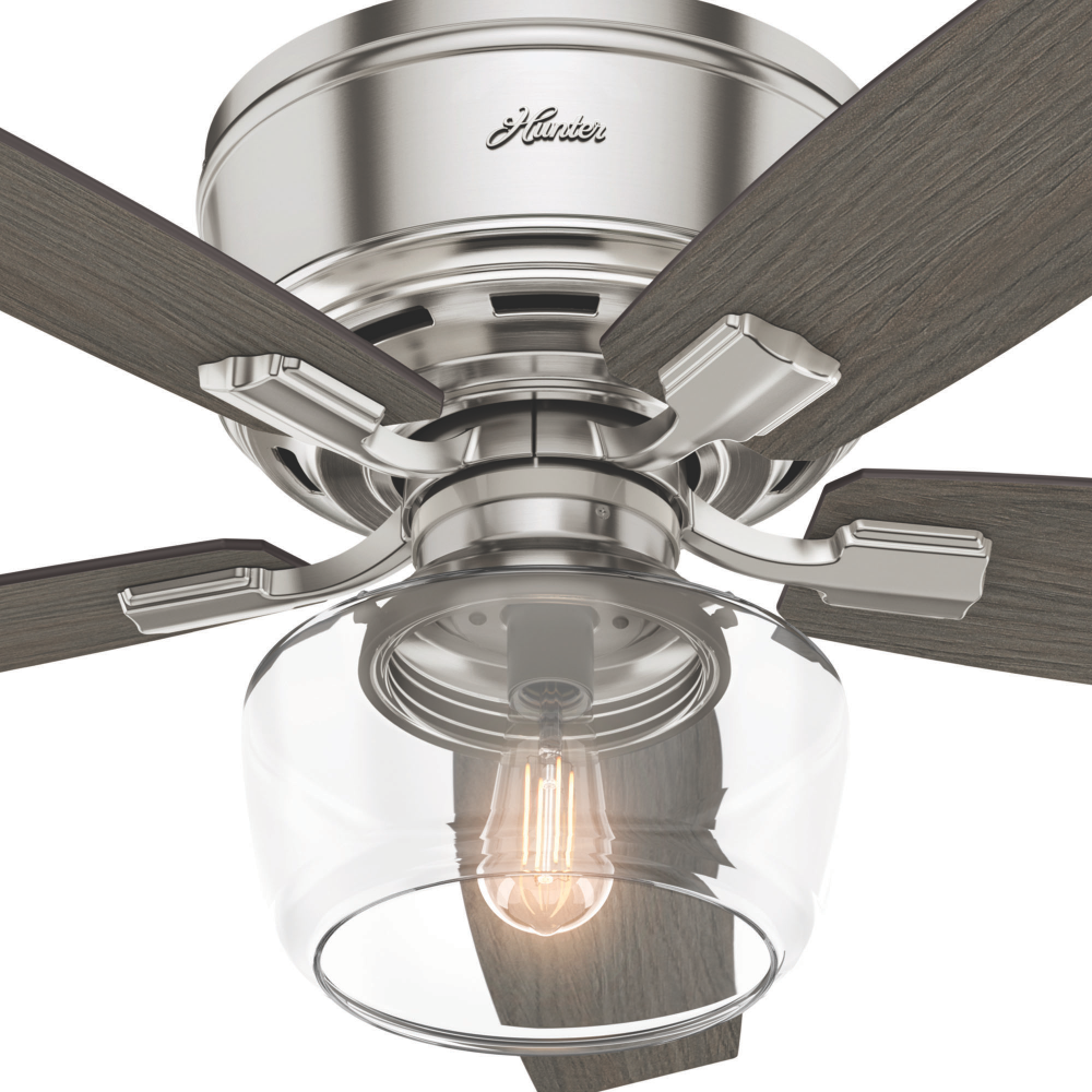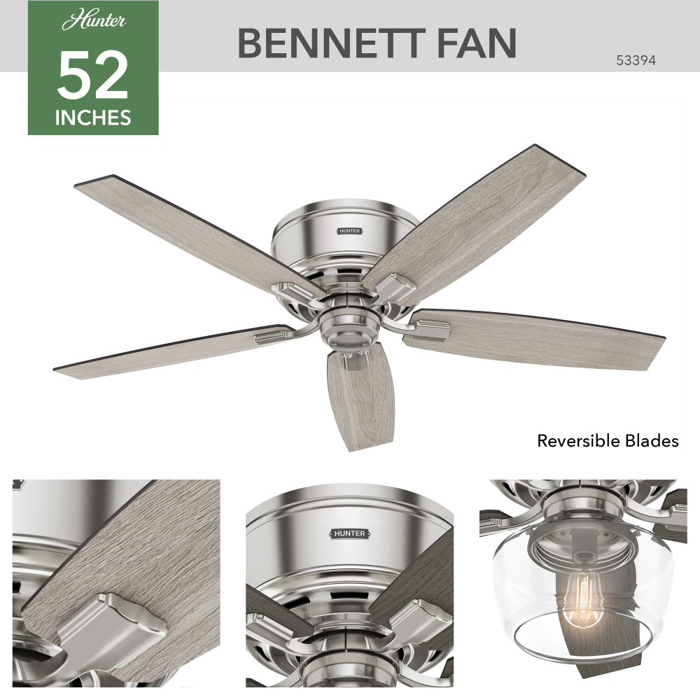 Hunter 52 inch Bennett Brushed Nickel Low Profile Ceiling Fan with LED Light Kit and Handheld Remote