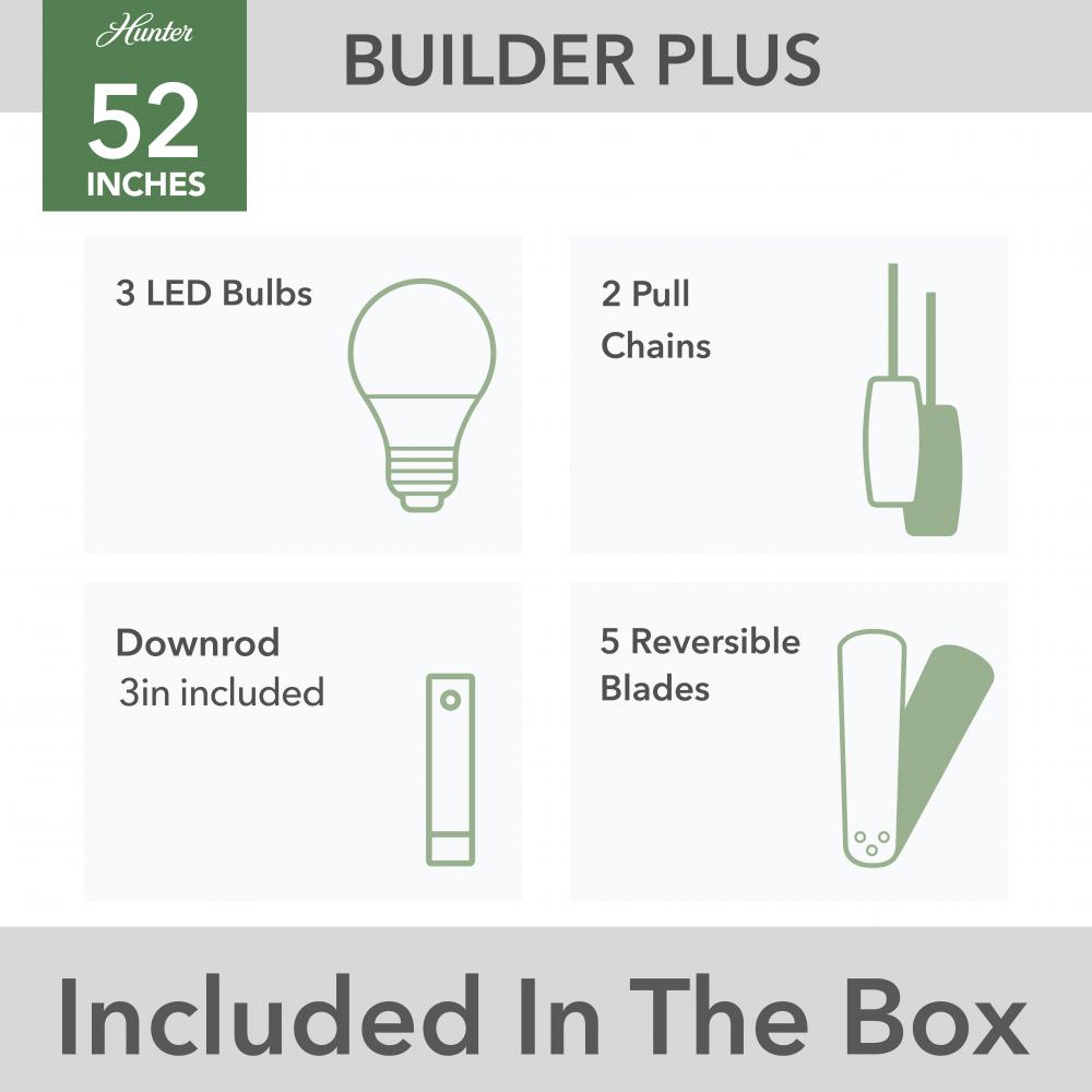 Hunter 53089 - Hunter 52 inch Builder White Ceiling Fan with LED Light Kit and Pull Chain