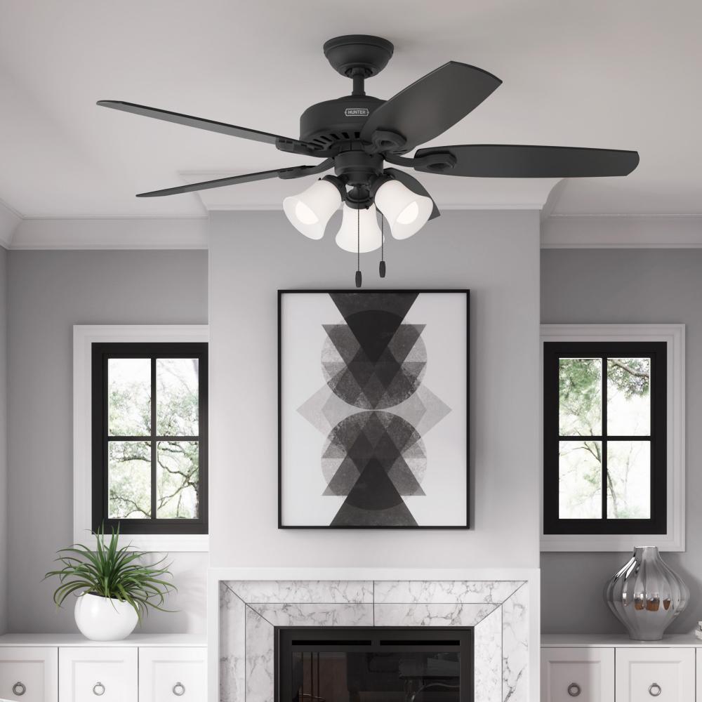 Hunter 52 inch Builder ENERGY STAR® Matte Black Ceiling Fan with LED Light Kit and Pull Chain