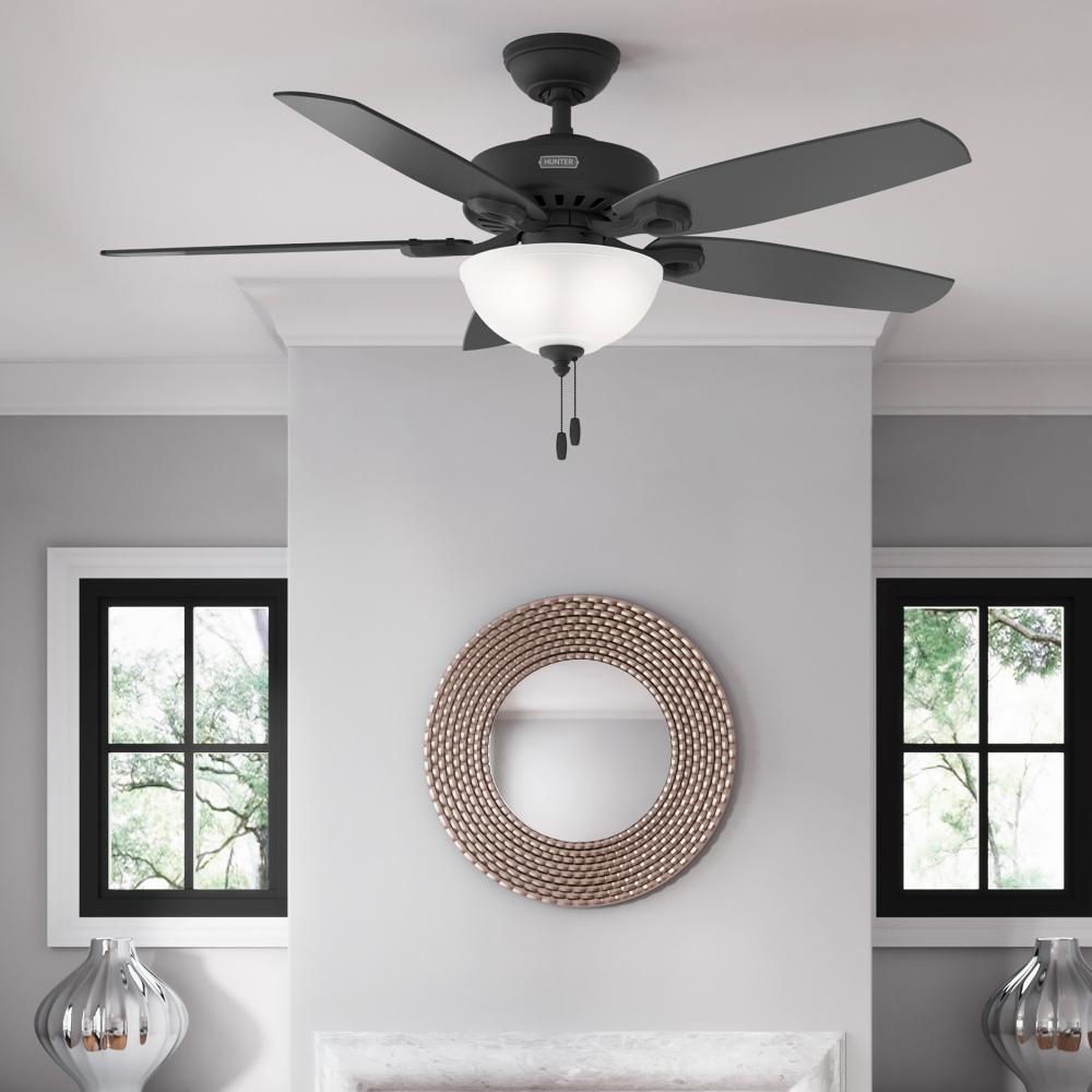Hunter 52 inch Builder Matte Black Ceiling Fan with LED Light Kit and Pull Chain
