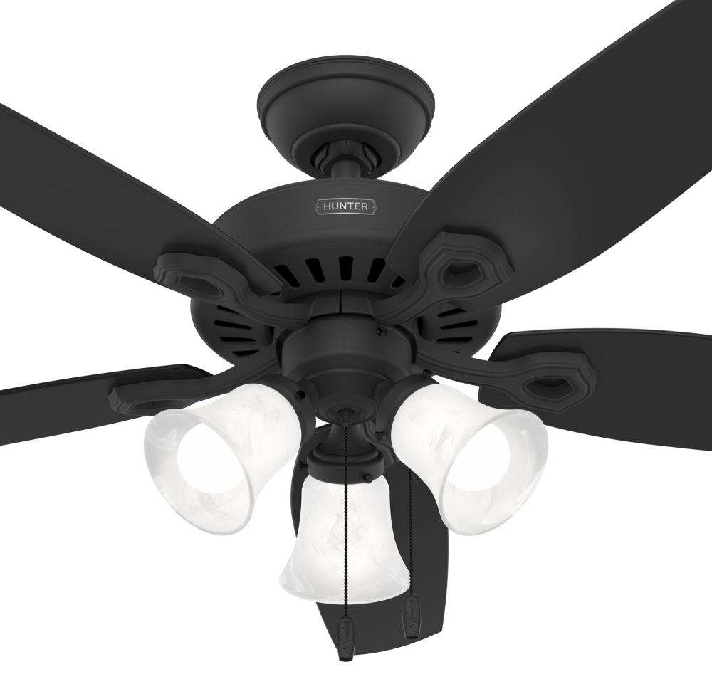 Hunter 52 inch Builder ENERGY STAR® Matte Black Ceiling Fan with LED Light Kit and Pull Chain