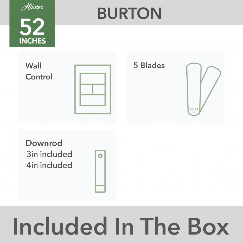 Hunter 52929 - Hunter 52 inch Burton Fresh White Damp Rated Ceiling Fan and Wall Control