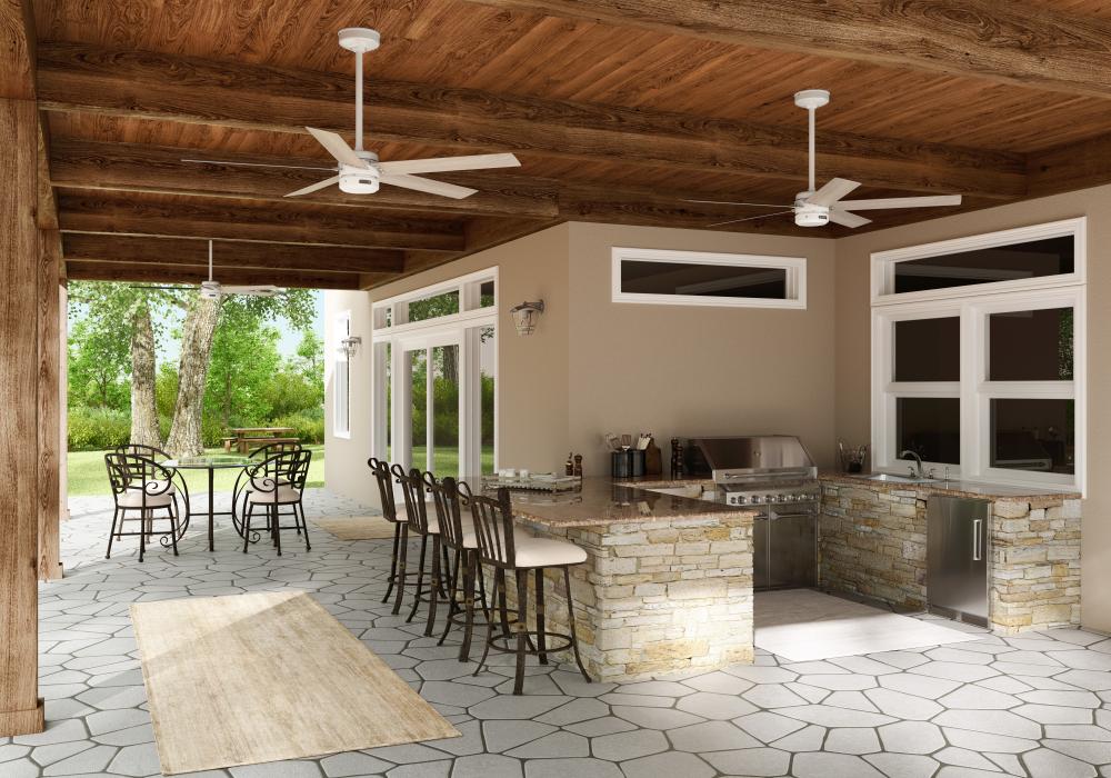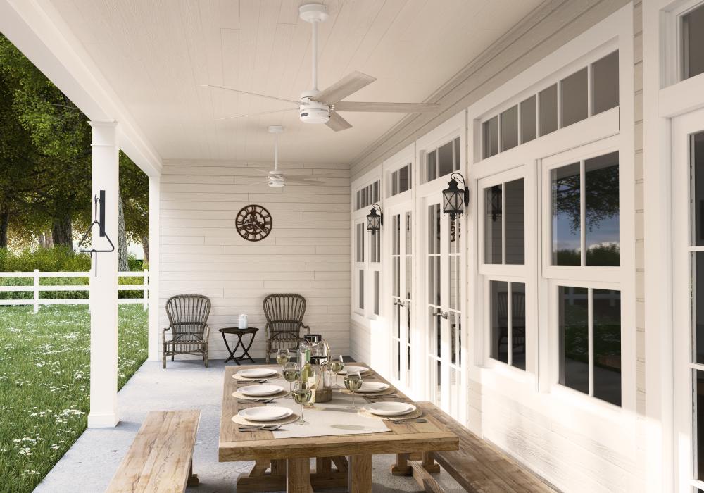 Damp-rated ceiling fans are a great option for covered patios, screened porches, and other areas that are not directly exposed to rain, snow, water, or moisture