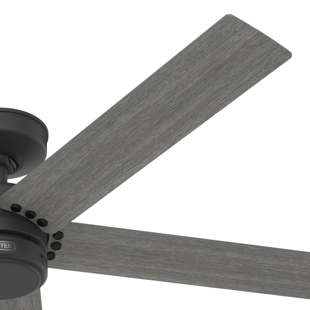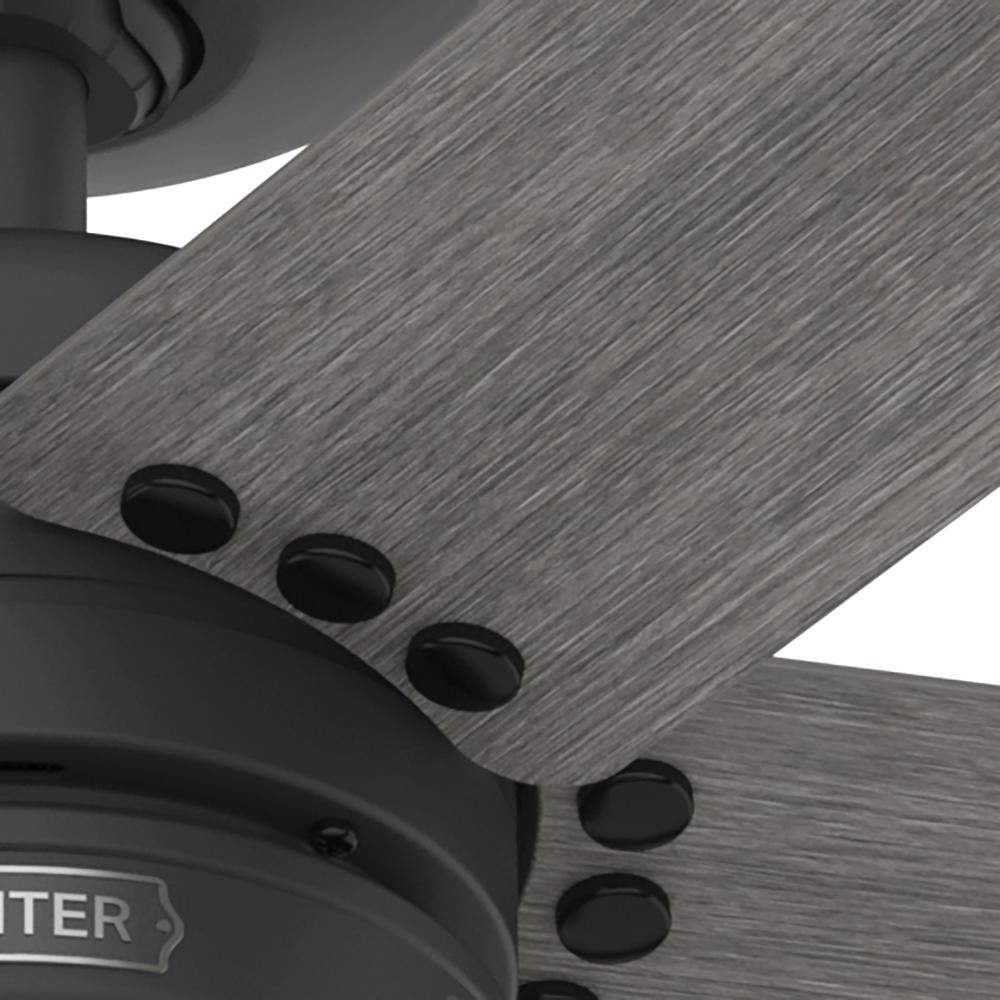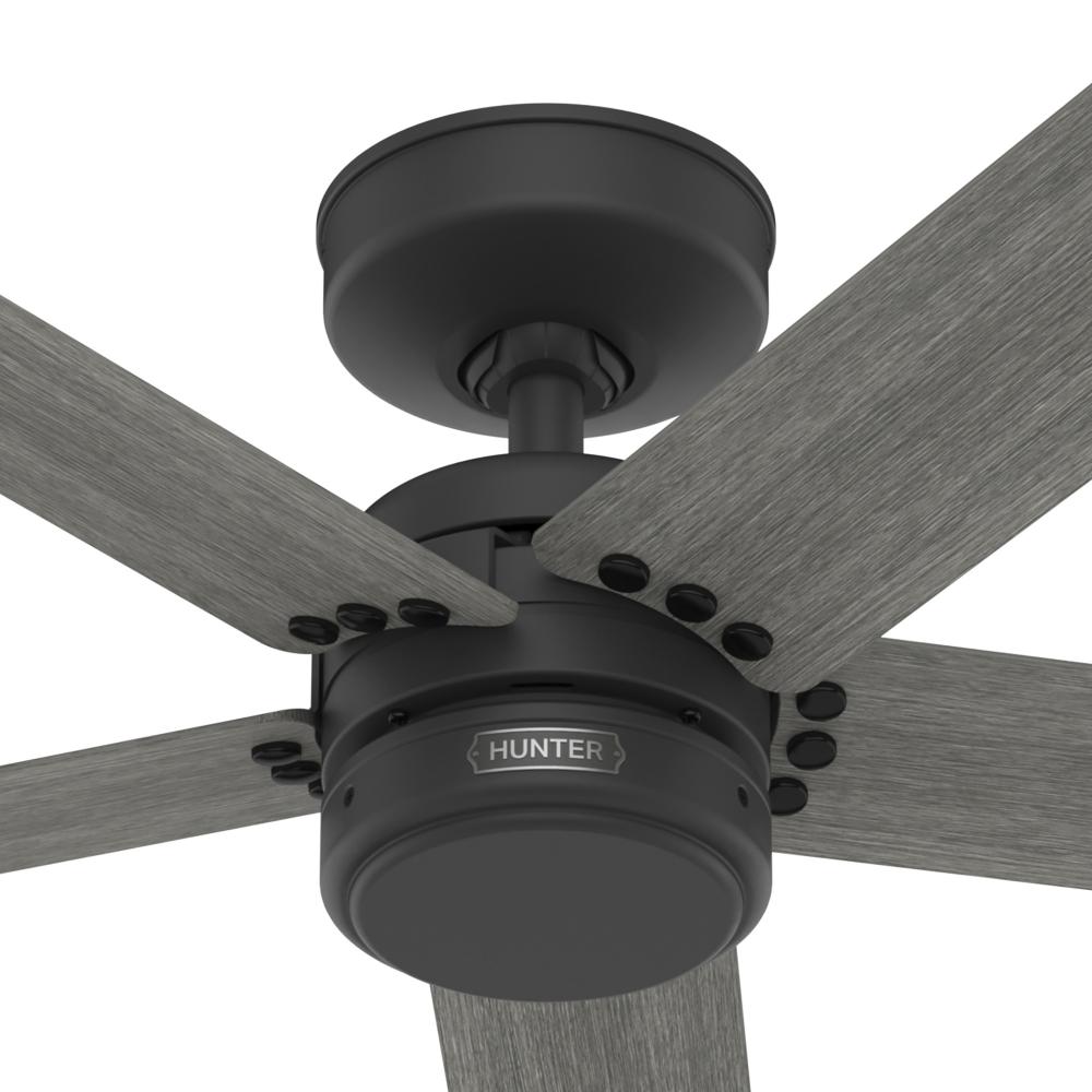 Hunter 52 inch Burton Matte Black Damp Rated Ceiling Fan and Wall Control