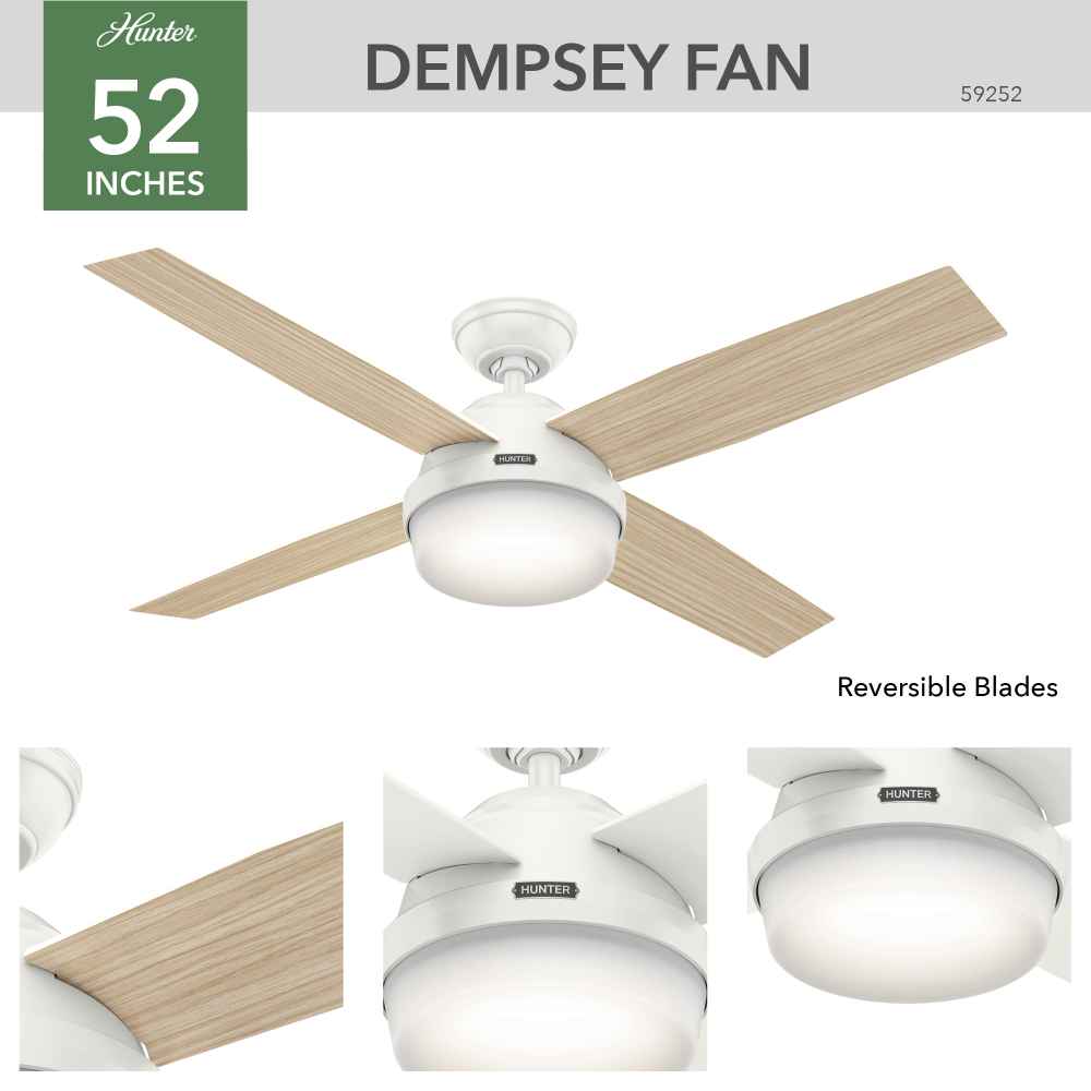 Hunter 52 inch Dempsey Fresh White Ceiling Fan with LED Light Kit and Handheld Remote