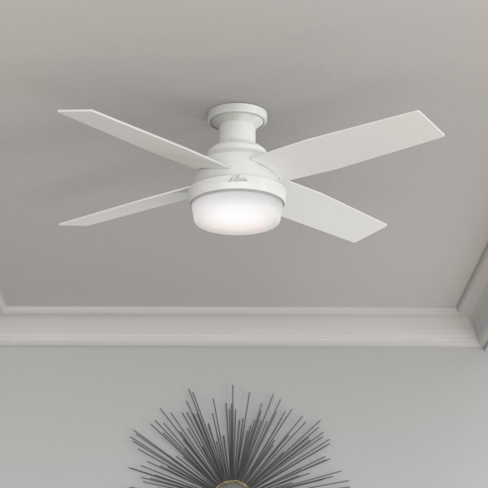 Hunter 52 inch Dempsey Fresh White Low Profile Ceiling Fan with LED Light Kit and Handheld Remote