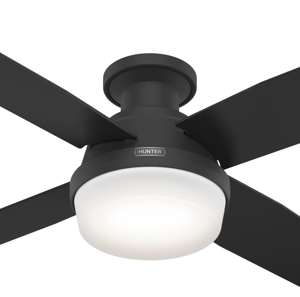 Hunter 52 inch Dempsey Matte Black Low Profile Ceiling Fan with LED Light Kit and Handheld Remote