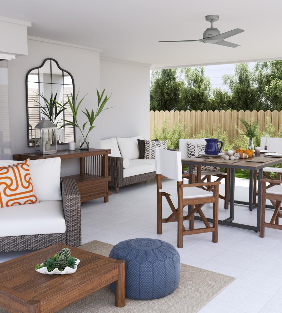 The Gallegos damp-rated ceiling fan is the must-have modern accent for your covered porch, patio, or large indoor spaces. Designed to keep your place looking—and feeling—cool all year round, the Gallegos delivers a quiet, smooth performance in a sophisticated style. Our 3-speed WhisperWind® reversible motor and SureSpeed® Guarantee make this ceiling fan the total package.