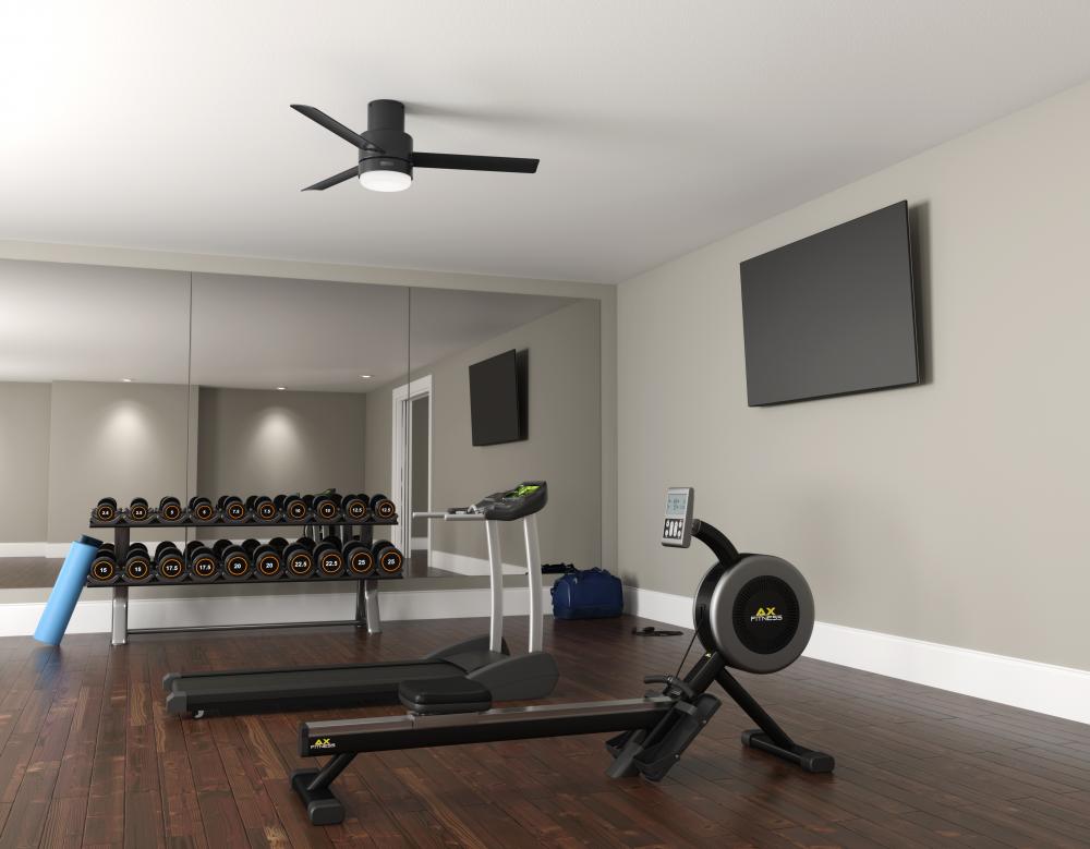 Hunter 51333 - Hunter 44 inch Gilmour Matte Black Low Profile Damp Rated Ceiling Fan with LED Light Kit