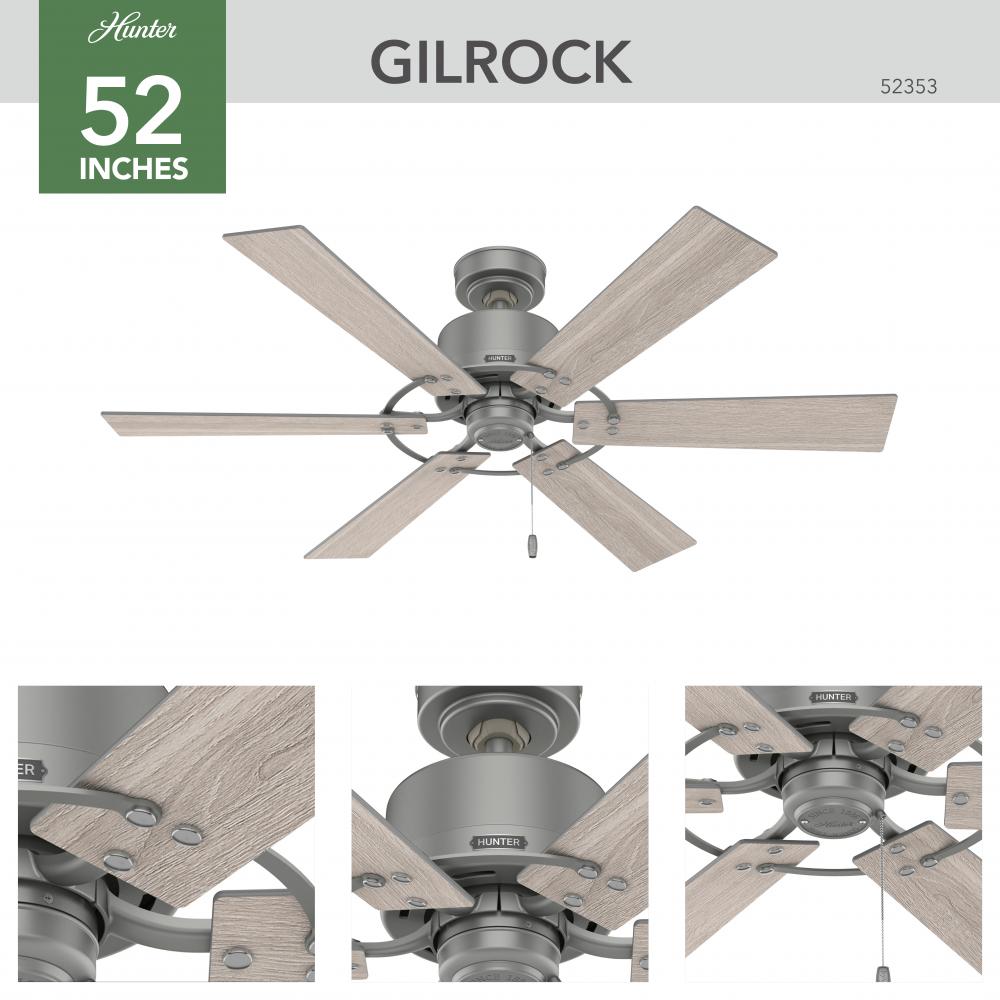 Hunter 52353 - Hunter 52 inch Gilrock Matte Silver Ceiling Fan and Pull Chain