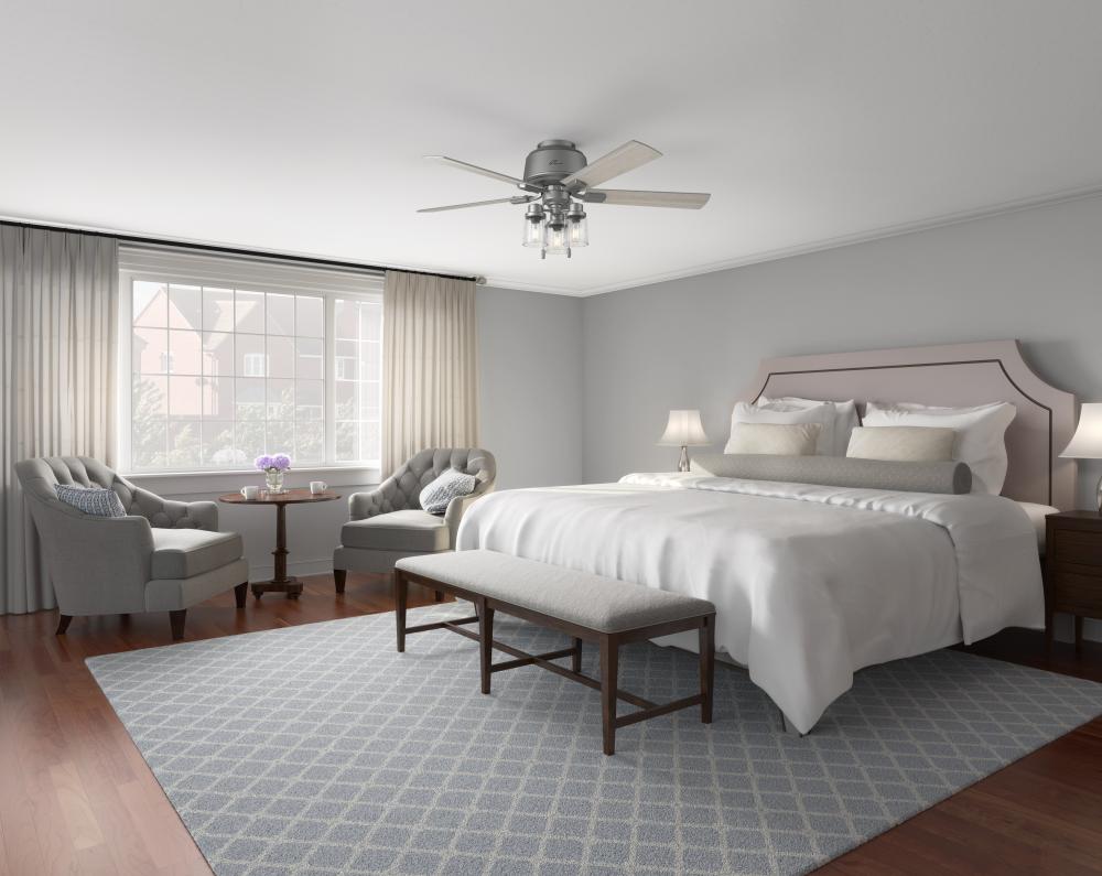 Hunter 50656 - Hunter 52 inch Hartland Matte Silver Low Profile Ceiling Fan with LED Light Kit and Pull Chain