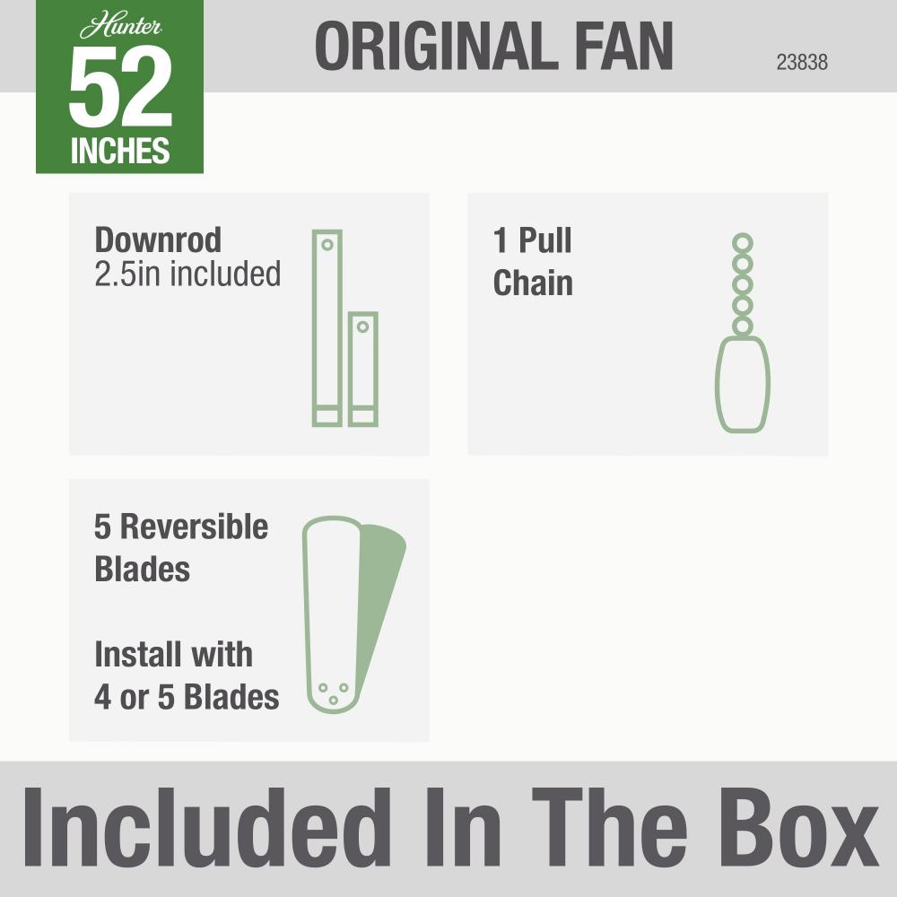 Trusted quality and expertise come together in the Hunter Original. With our SureSpeed? Guarantee and original design, this outdoor ceiling fan delivers optimized, high-speed cooling to help create the perfect ambiance in your covered porches and patios. Its classic design coupled with fresh finishes emphasize the look of traditional, Americana, and farmhouse style patios.