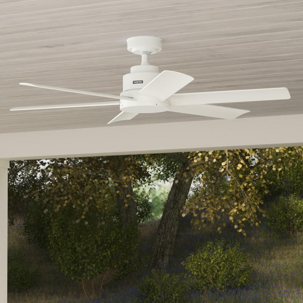 Hunter 52 inch Kennicott Fresh White Damp Rated Ceiling Fan and Wall Control
