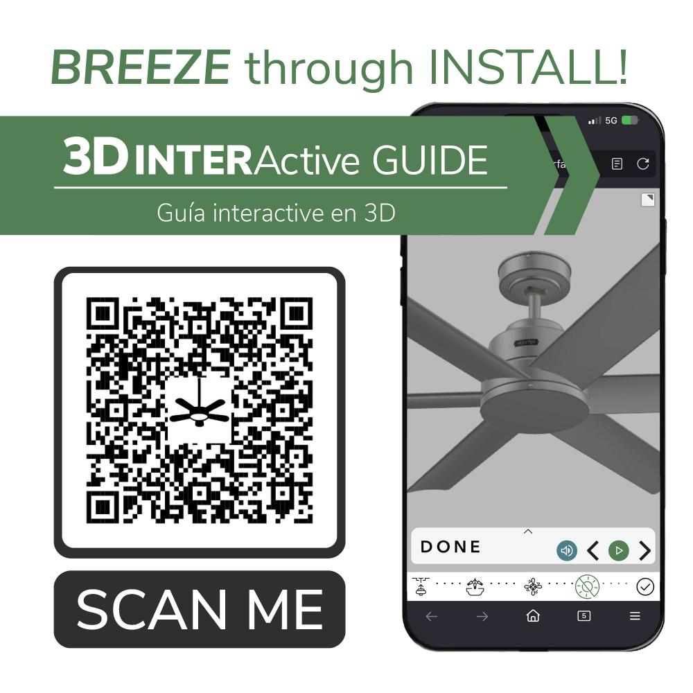 DIGITAL MANUAL: Installation made easy with Hunter’s 3D InterActive Guide—just scan the QR code for quick setup.