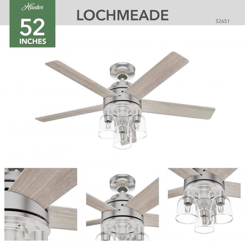Hunter 52 inch Lochemeade Brushed Nickel Ceiling Fan with LED Light Kit and Handheld Remote