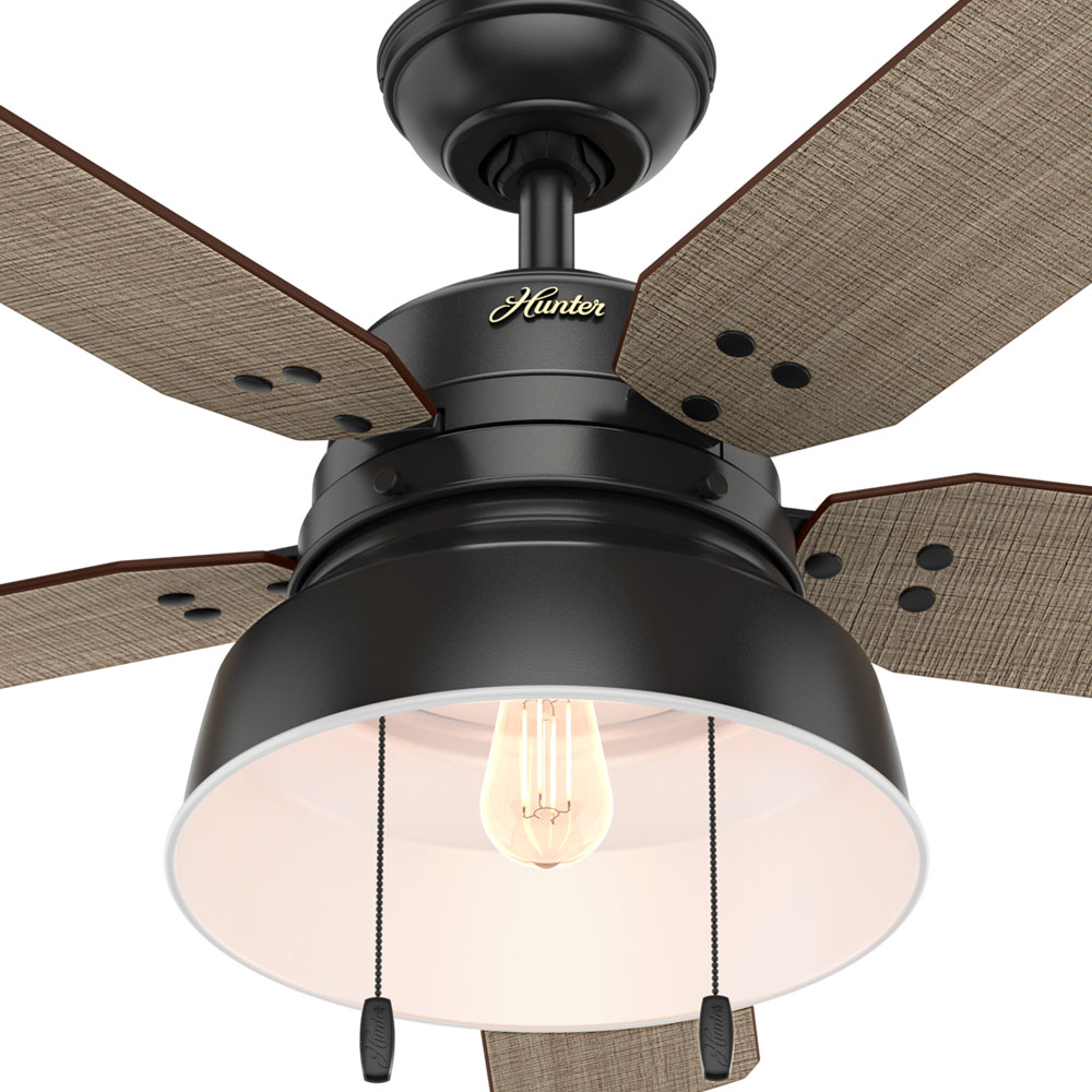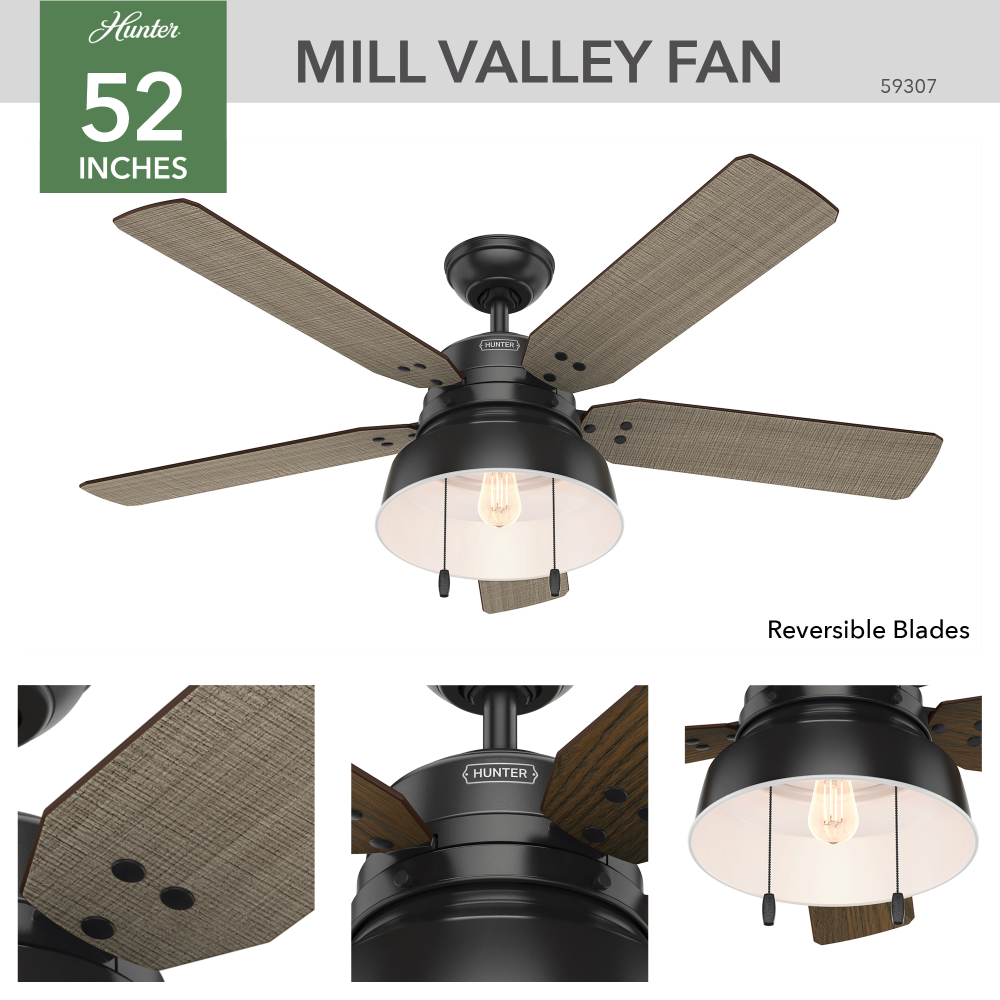 Hunter 59307 - Hunter 52 inch Mill Valley Matte Black Damp Rated Ceiling Fan with LED Light Kit and Pull Chain