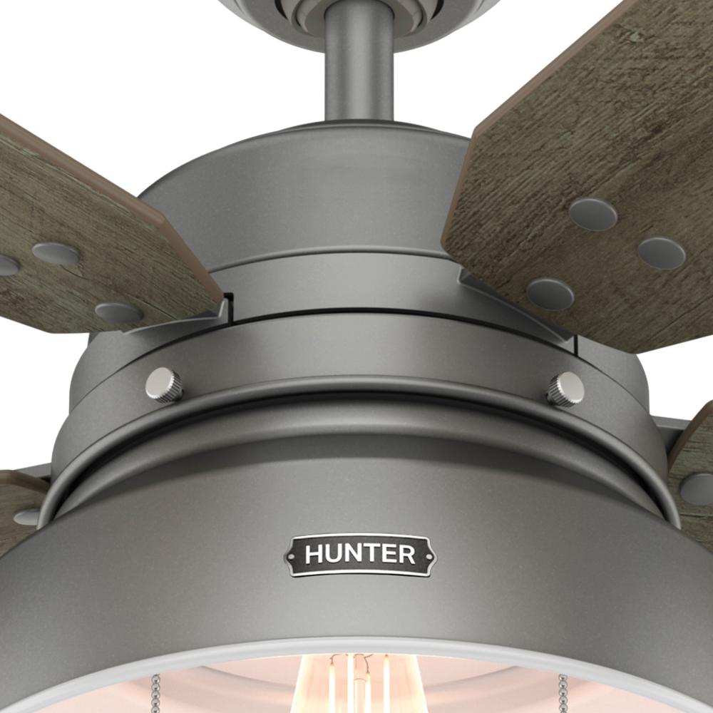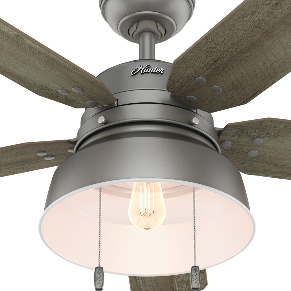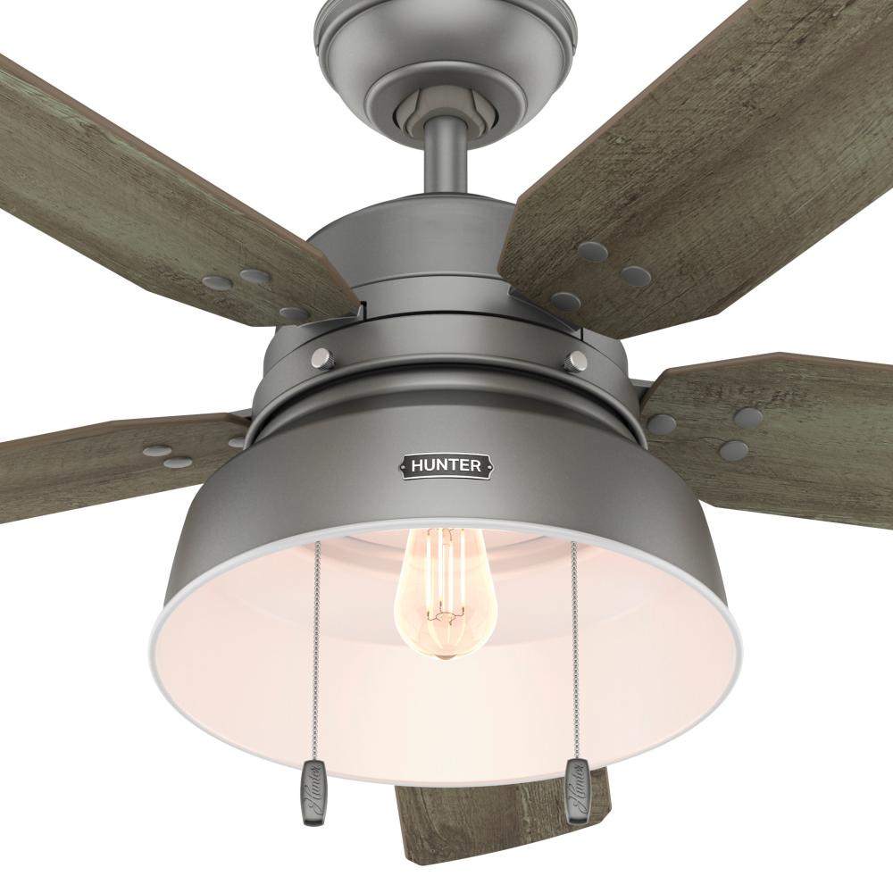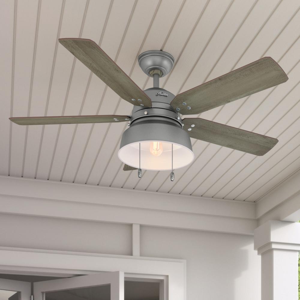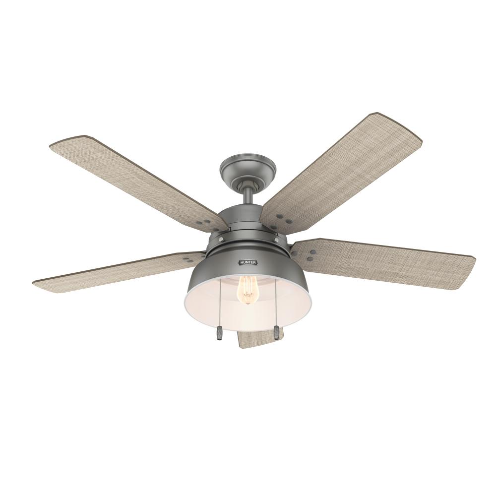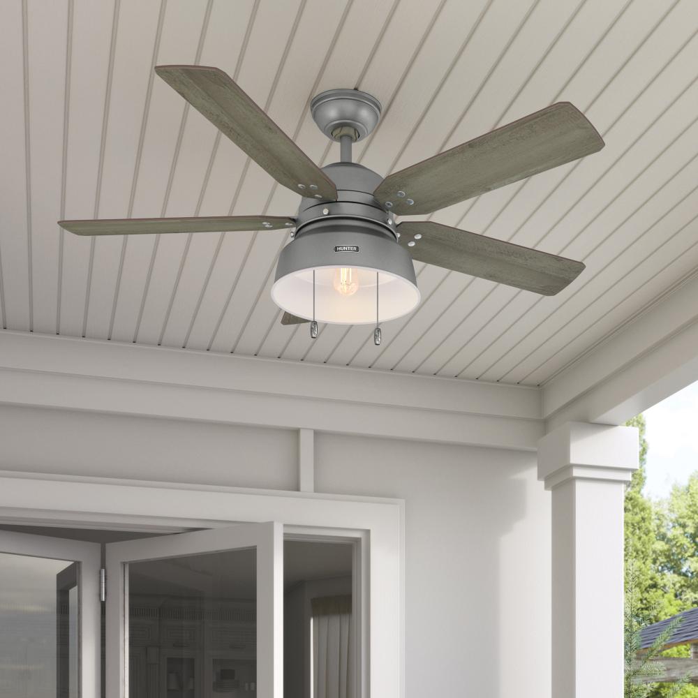 Hunter 59308 - Hunter 52 inch Mill Valley Matte Silver Damp Rated Ceiling Fan with LED Light Kit and Pull Chain
