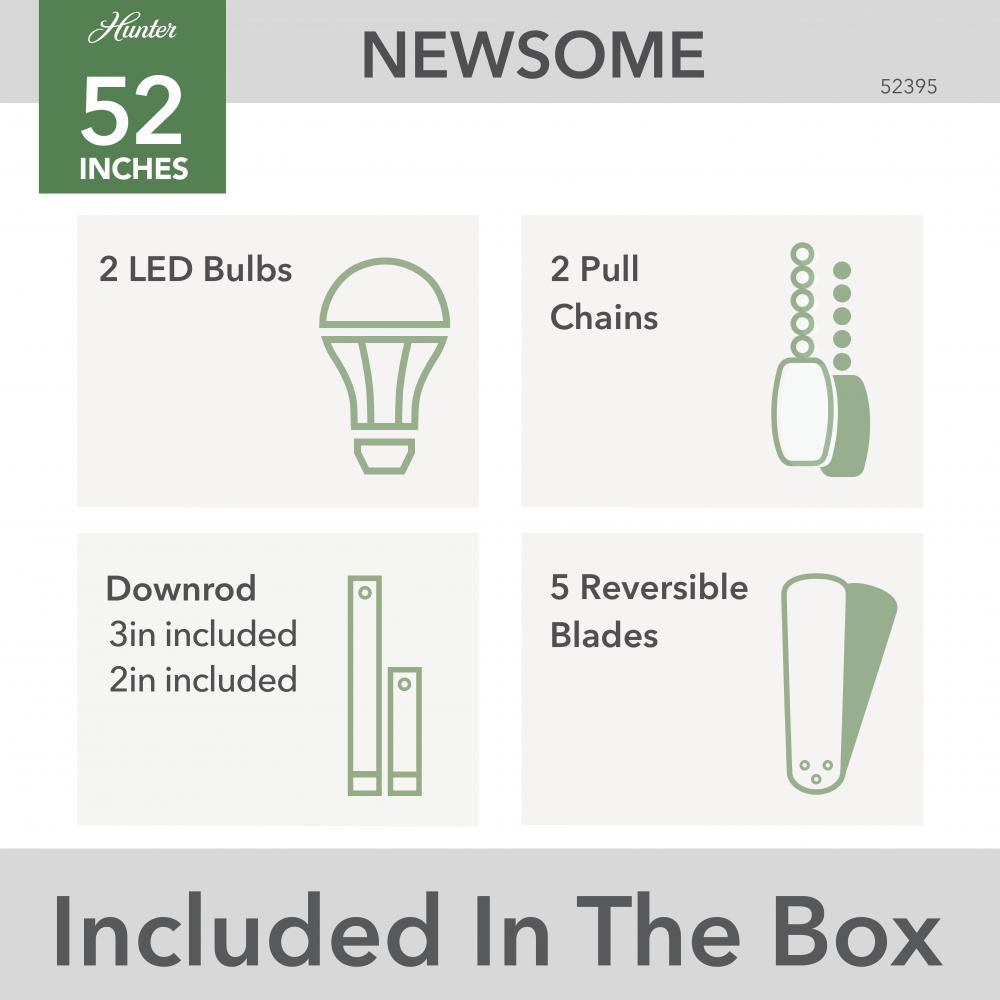 Hunter 53316 - Hunter 52 inch Newsome Fresh White Ceiling Fan with LED Light Kit and Pull Chain