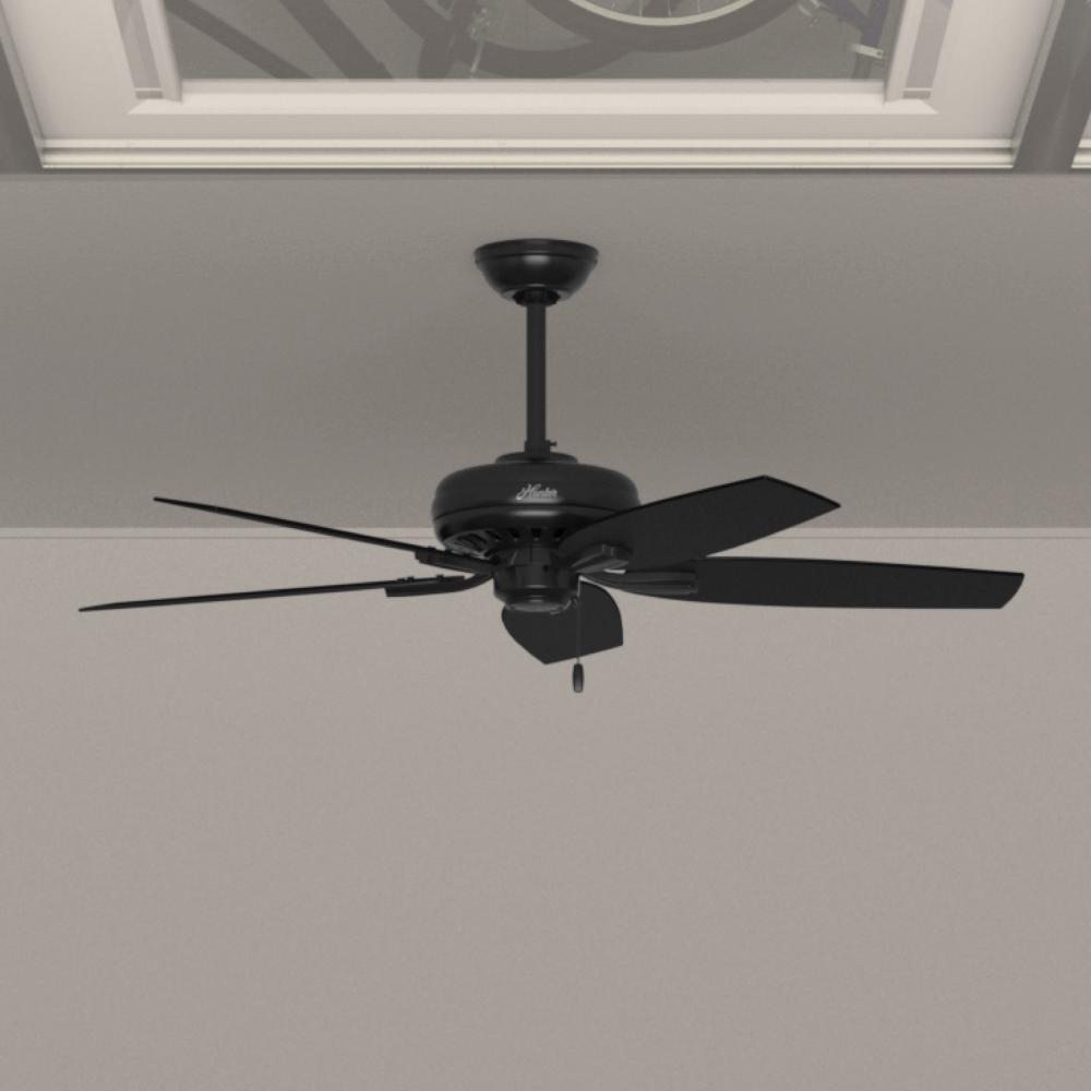 Hunter 52 inch Newsome Matte Black Damp Rated Ceiling Fan and Pull Chain
