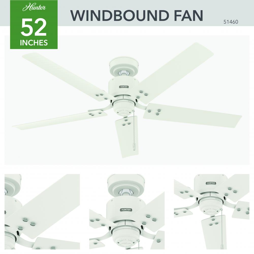 Hunter 51460 - Hunter 52 inch Windbound Matte White Damp Rated Ceiling Fan and Pull Chain