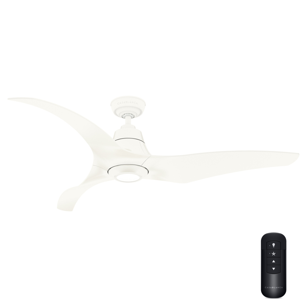 Hunter 52439 - Hunter 60 inch Arwen ENERGY STAR® Matte White Damp Rated Ceiling Fan with LED Lt Kit