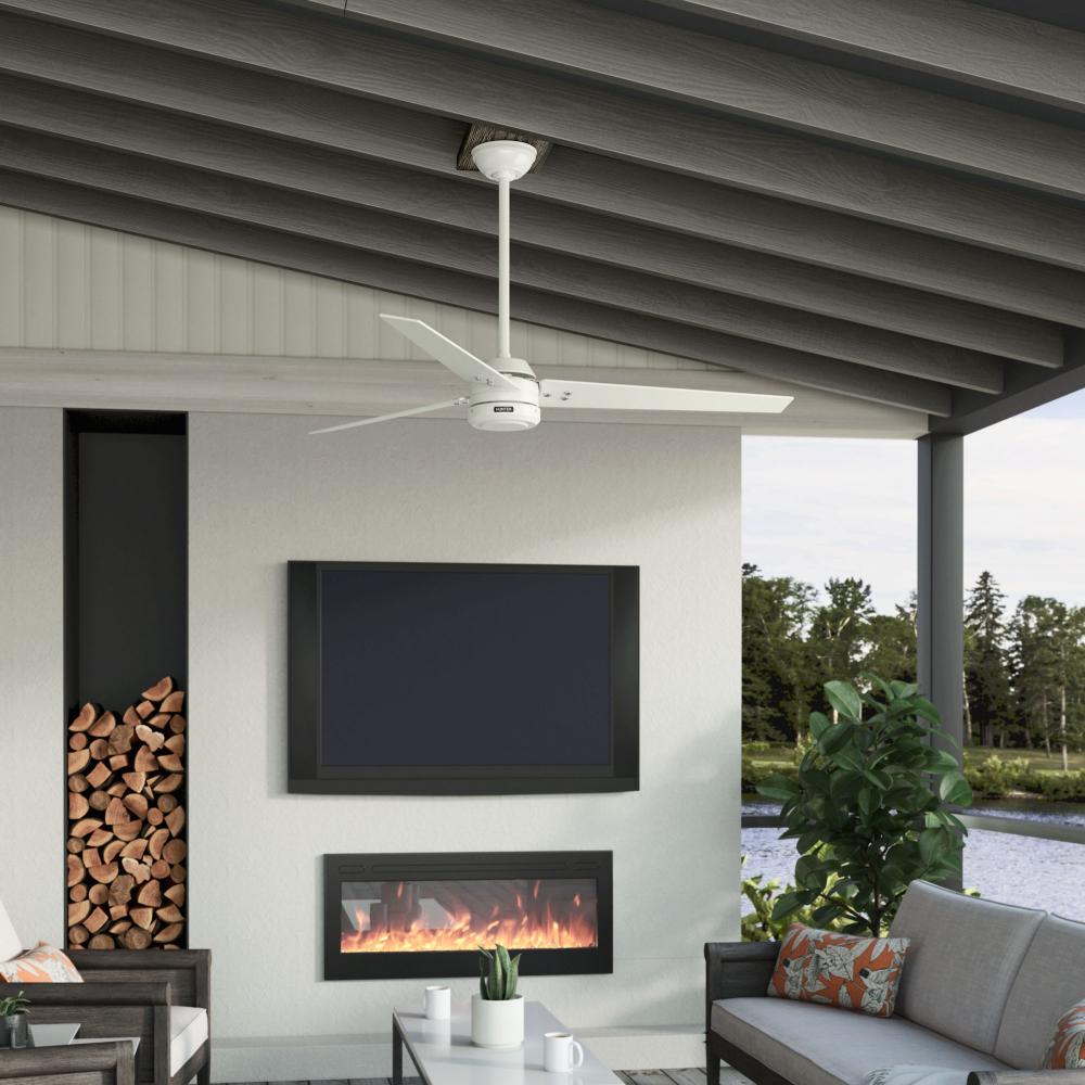 Hunter 60 inch Cassius ENERGY STAR® Fresh White Damp Rated Ceiling Fan and Wall Control