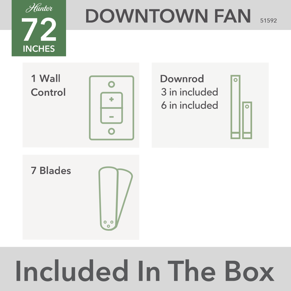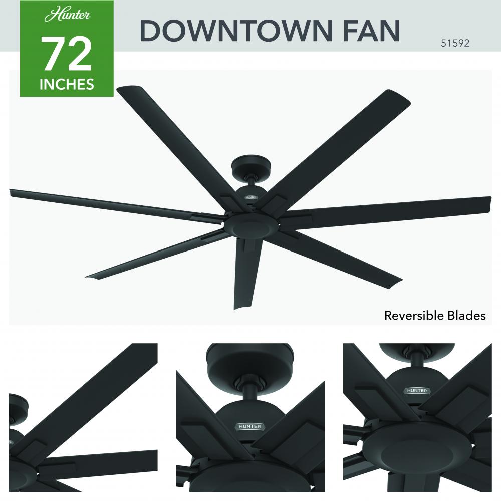 Hunter 51592 - Hunter 72 inch Downtown ENERGY STAR® Matte Black Damp Rated Ceiling Fan and Wall Control