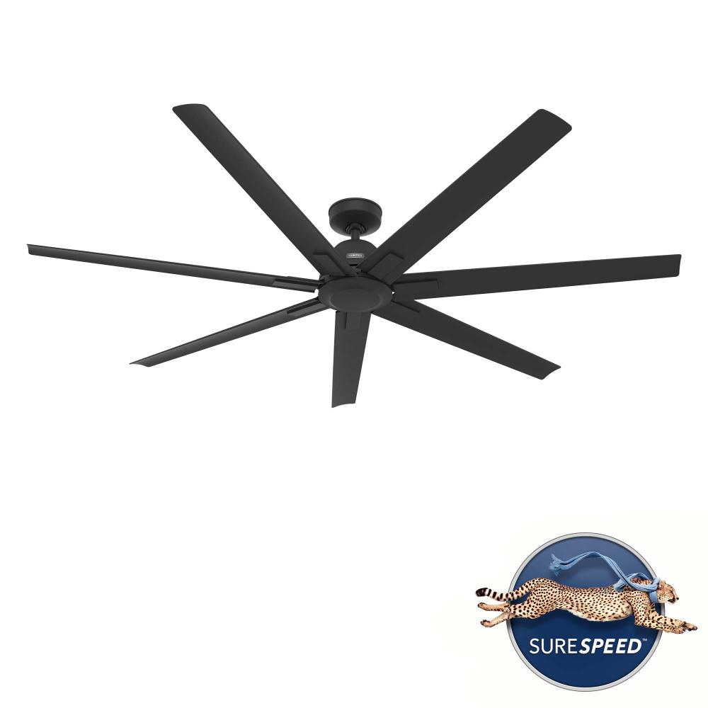 Hunter 72 inch Downtown ENERGY STAR® Matte Black Damp Rated Ceiling Fan and Wall Control