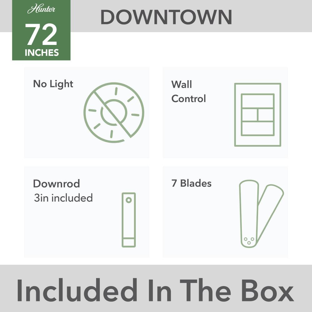 Hunter 53439 - Hunter 72 inch Downtown ENERGY STAR® Matte White Damp Rated Ceiling Fan and Wall Control
