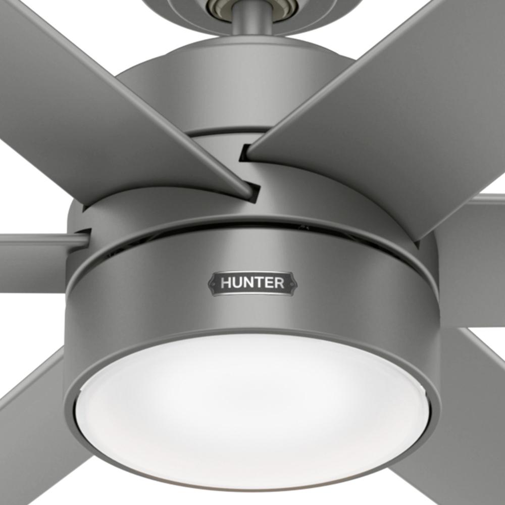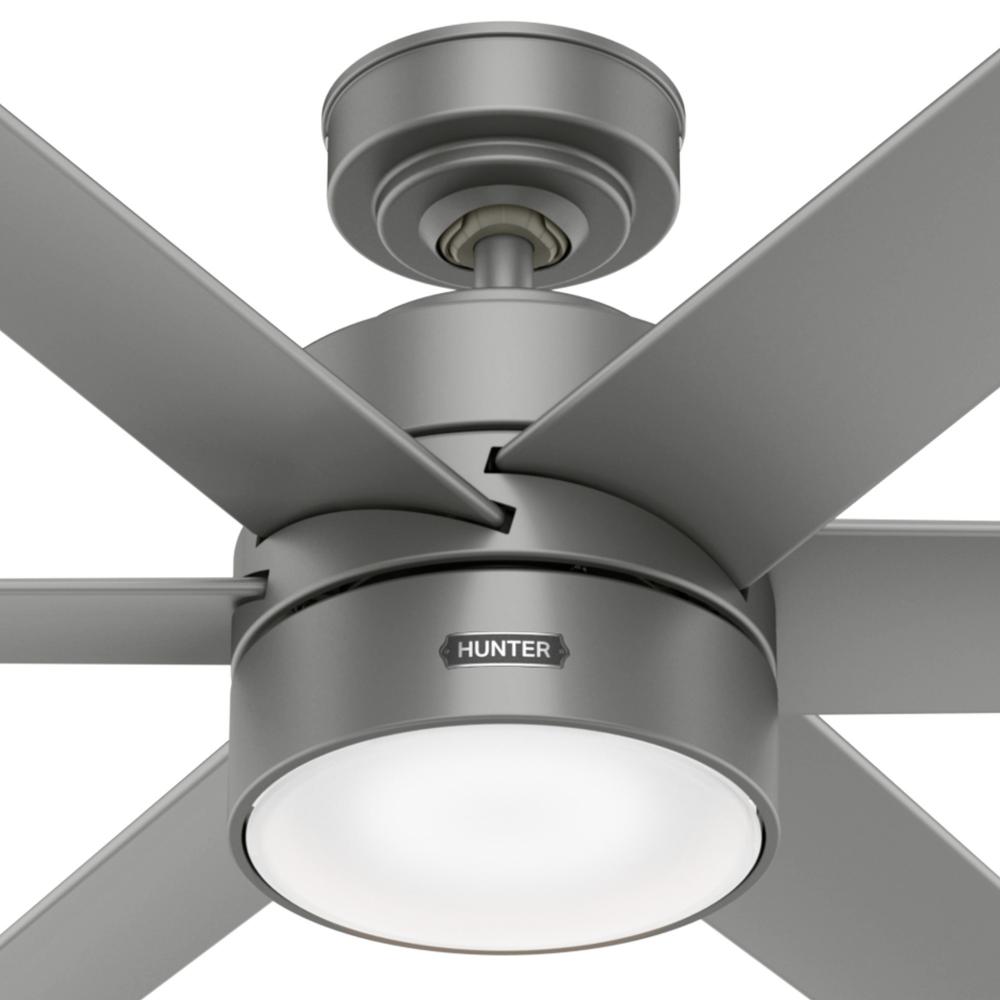 Hunter 59625 - Hunter 60 inch Solaria ENERGY STAR® Matte Silver Damp Rated Ceiling Fan with LED Light Kit